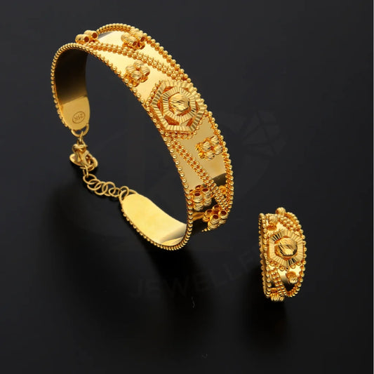 Gold Round Stud Ball Flower Design Bangle Set (Bangle and Ring) 21KT - FKJSET21KM8689