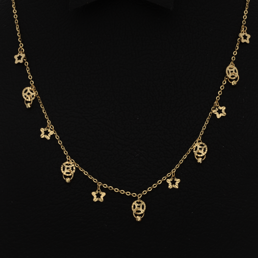 Gold Classic Star Design and Round Shaped Necklace 18KT - FKJNKL18K9190