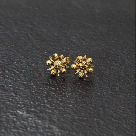 Gold Classy Flower Shaped Earrings 18KT - FKJERN18K9379