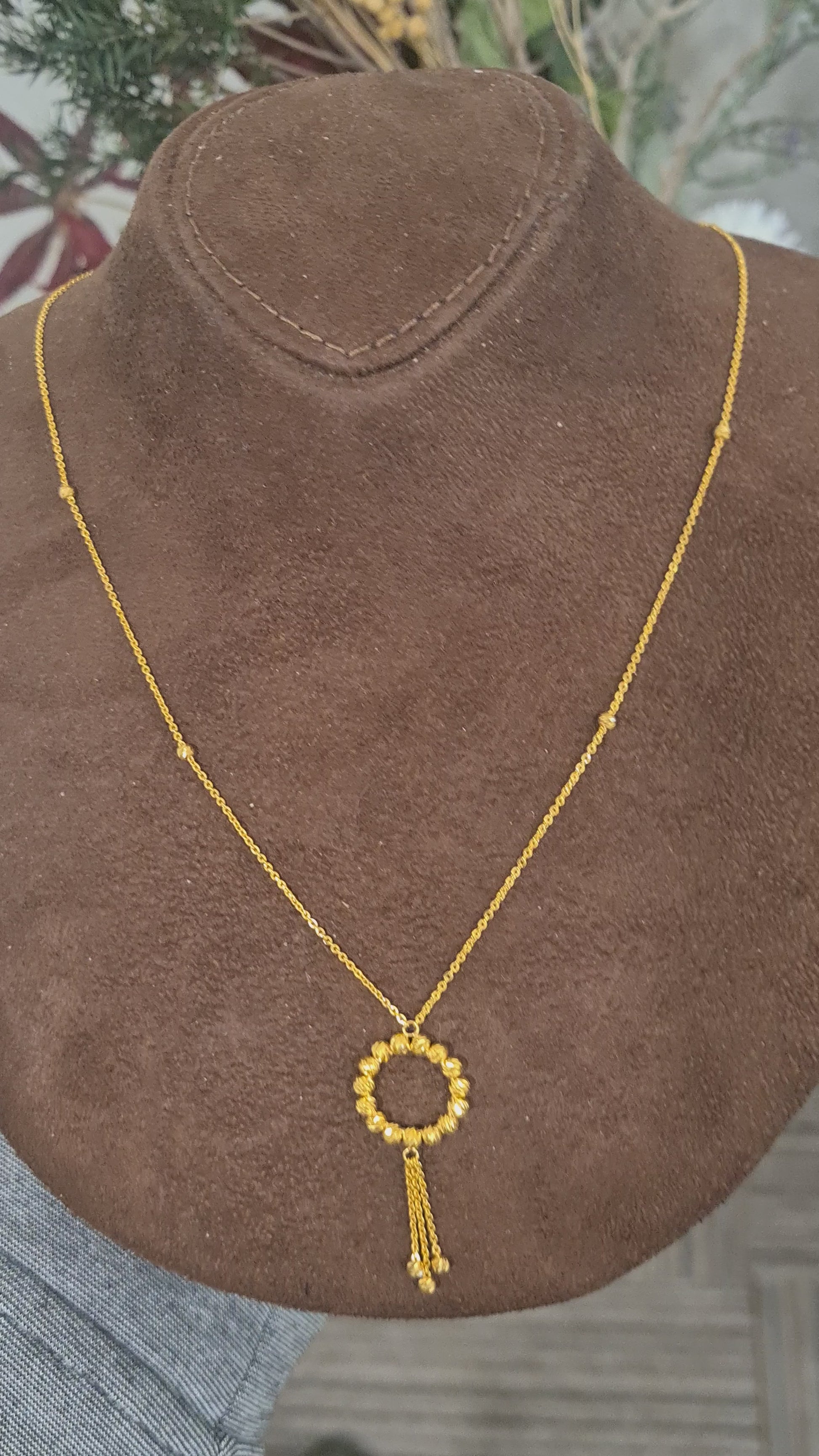 Gold Beaded Halo Tassel Necklace 21KT - FKJNKL21KM10907