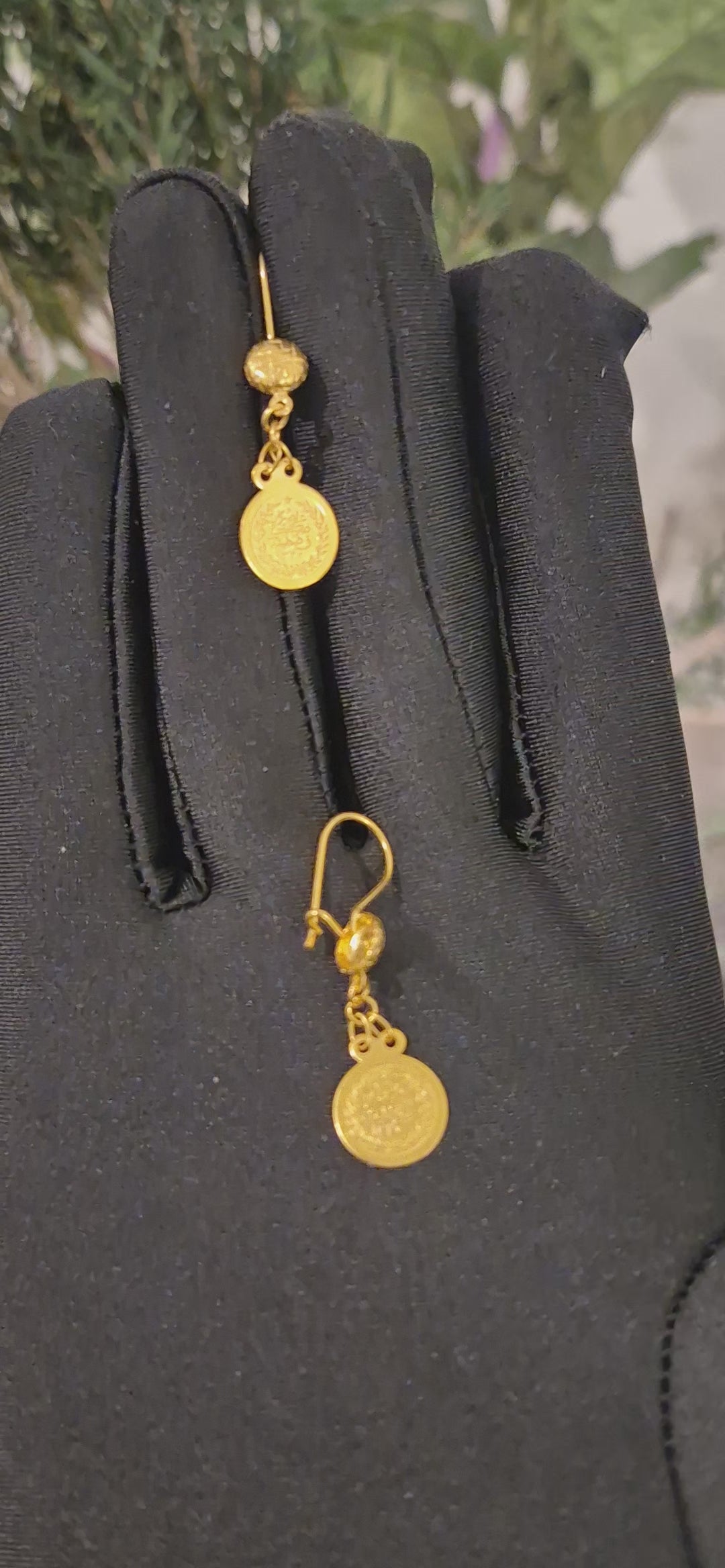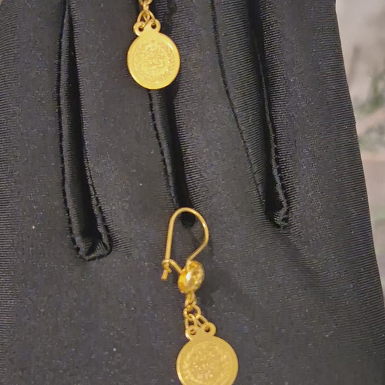 Gold Coin Dangle Earrings 21KT - FKJERN21KM11427