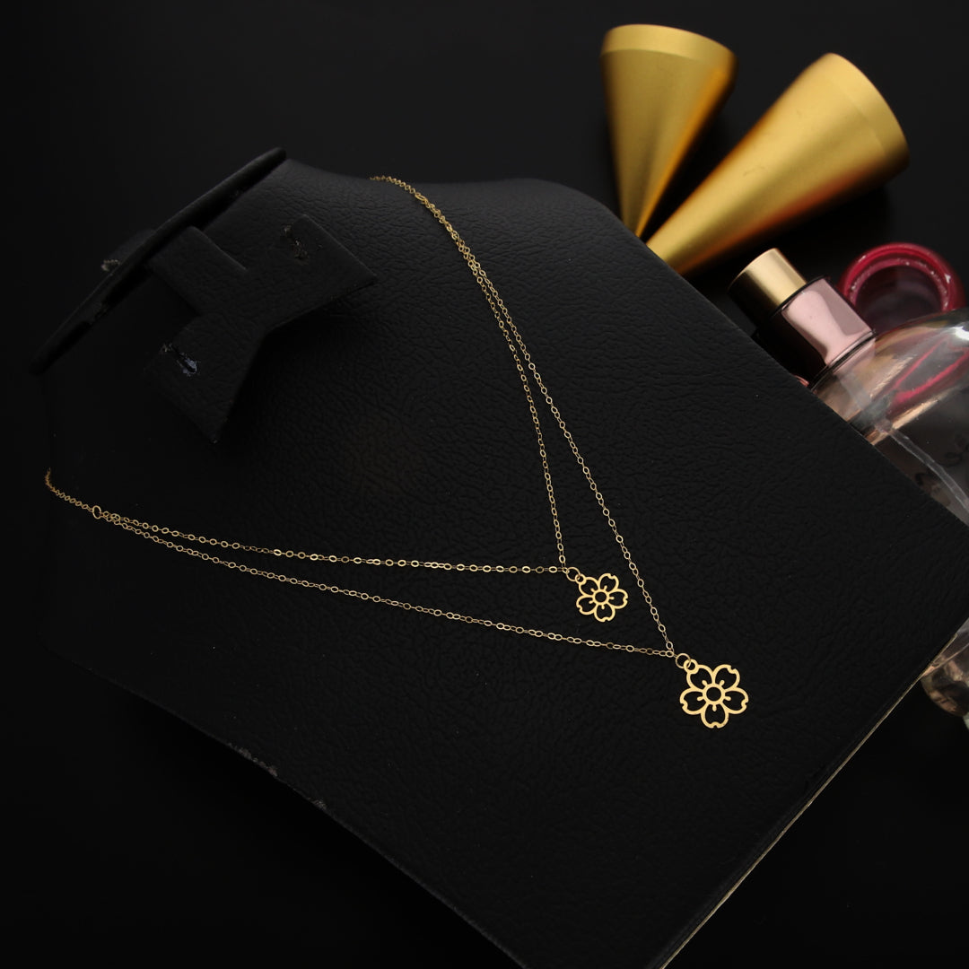 Gold Double Layered Cherry Blossoms Shaped Necklace 21KT - FKJNKL21KM9792