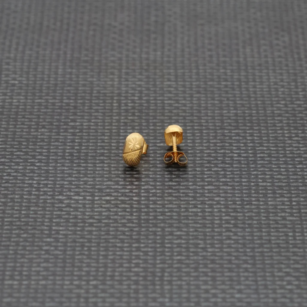 Gold Ethnic Rustic Oval Earrings 18KT - FKJERN18K8227
