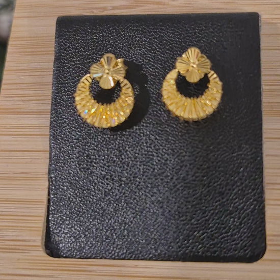 Gold Floral Halo Earrings 21KT - FKJERN21KM11514