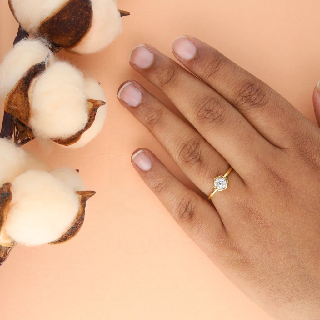 Gold Flower Shaped Solitaire Ring 18KT - FKJRN18K7896