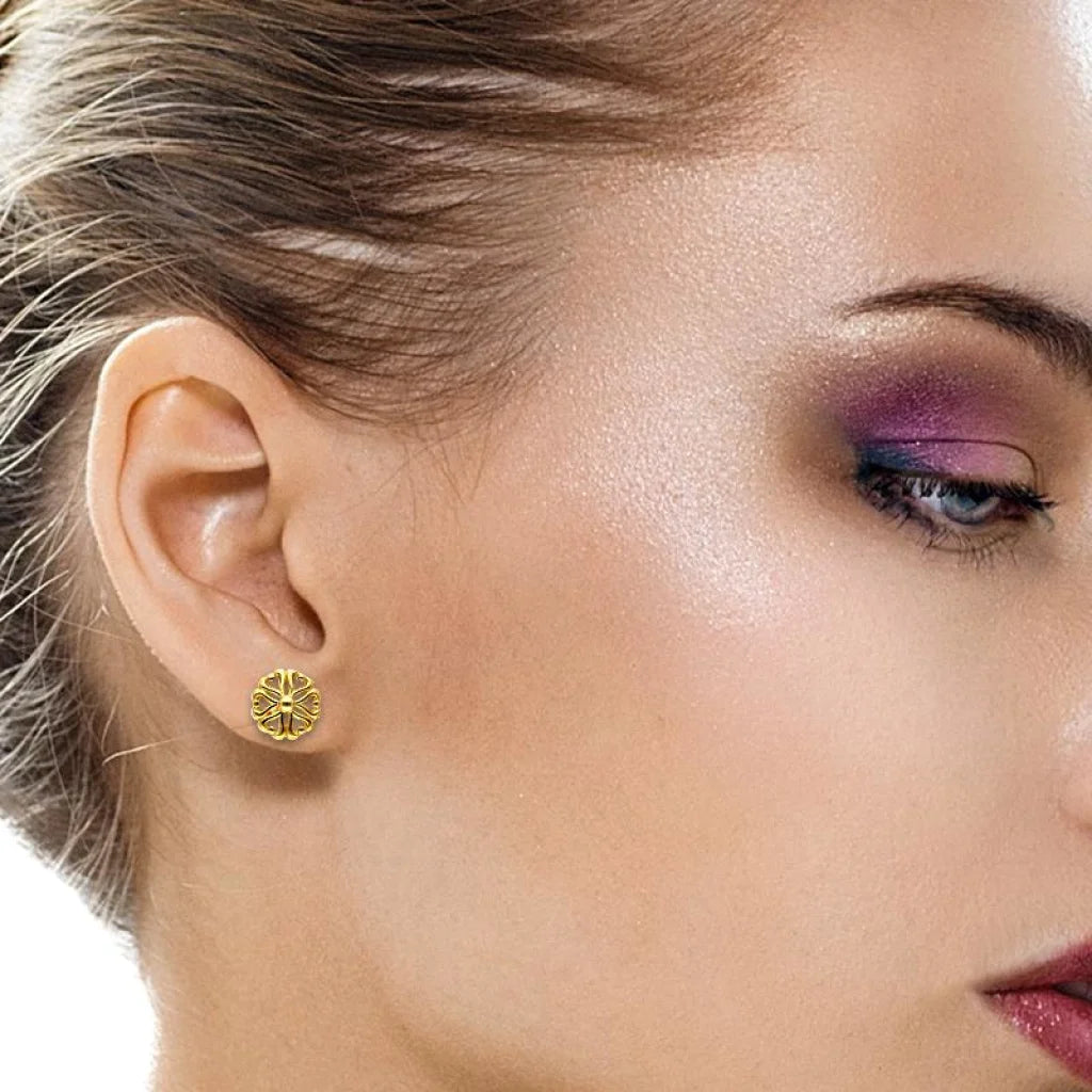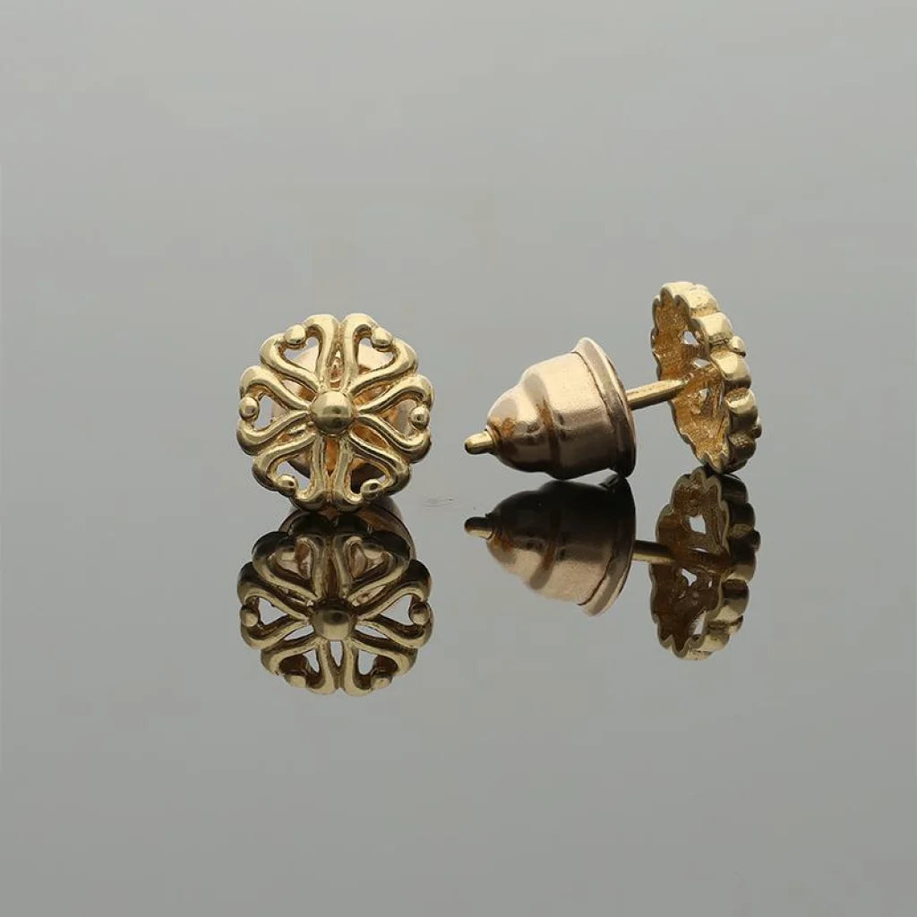 Gold Flower Shaped Stud Earrings 18KT - FKJERN18K2294