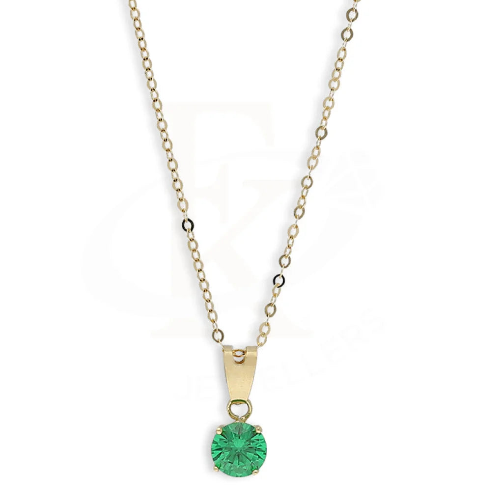 Gold Green Solitaire Pendant Set (Necklace and Earrings) 18KT - FKJNKLST18K5555