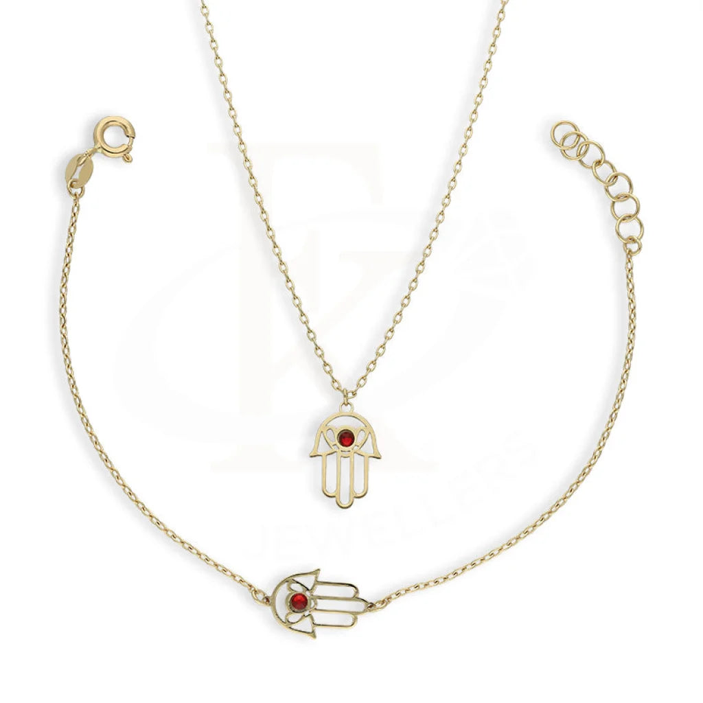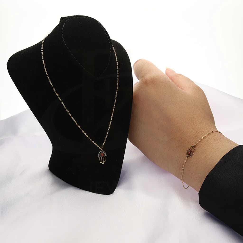Gold Hamsa Hand Pendant Set (Necklace and Bracelet) 18KT - FKJNKLST18K5282