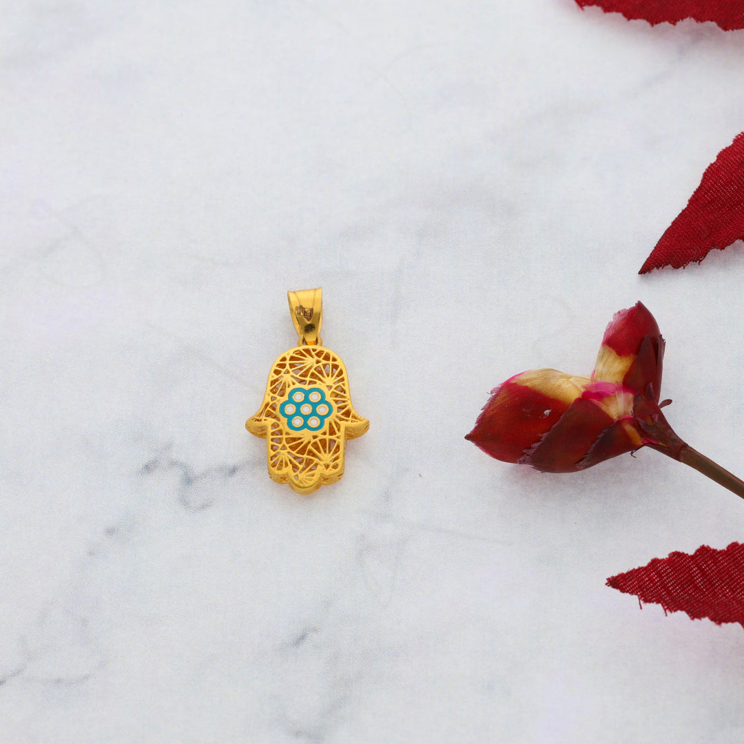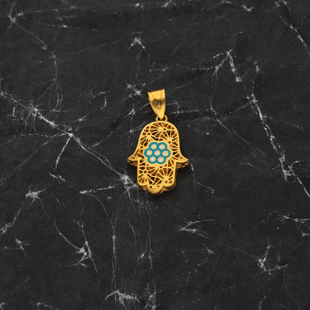 Gold Hamsa Hand Shaped Pendant 21KT - FKJPND21KM9936