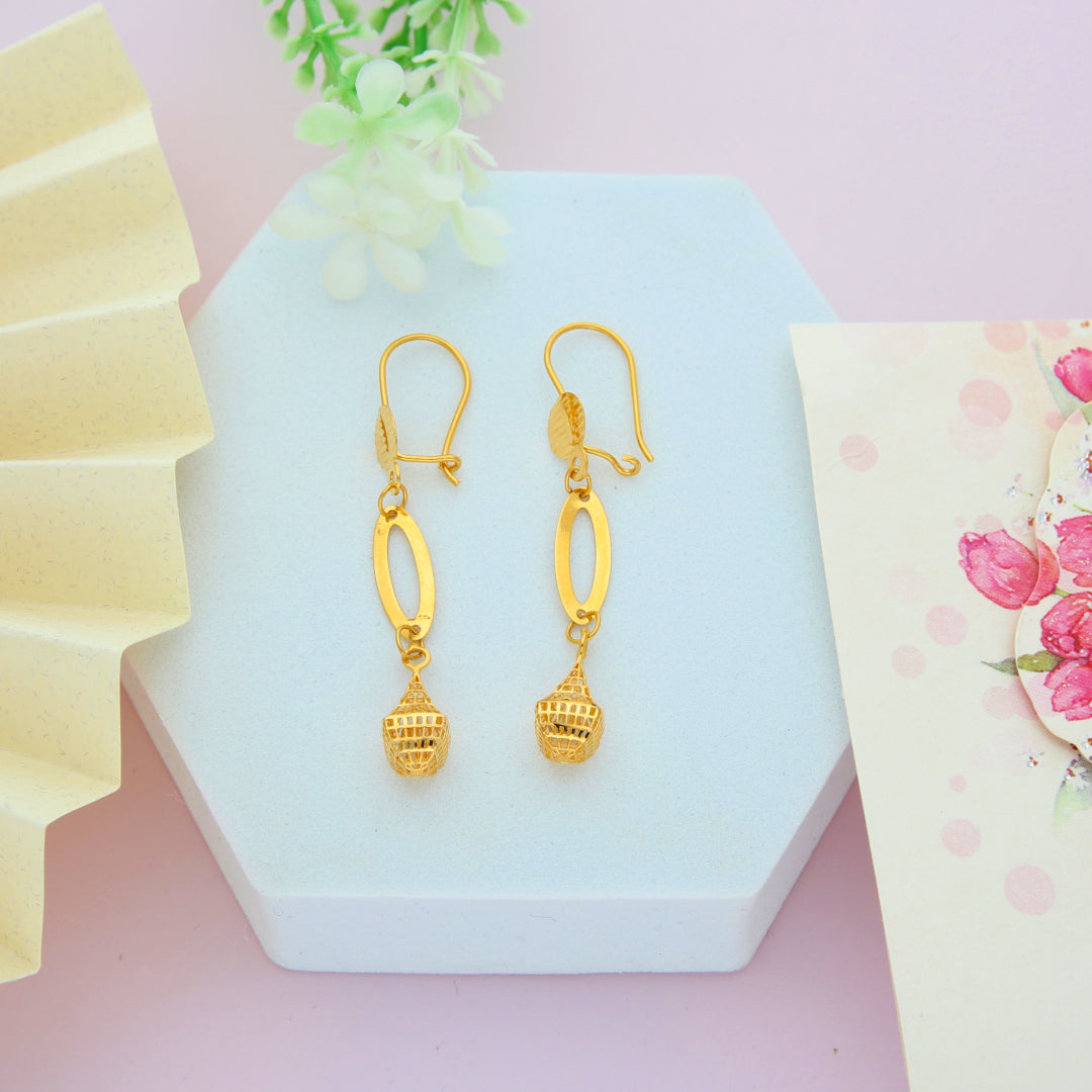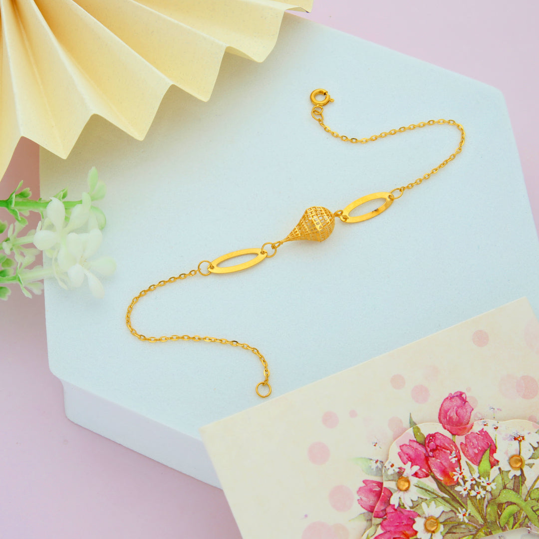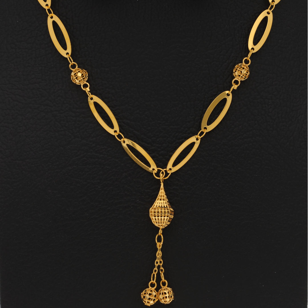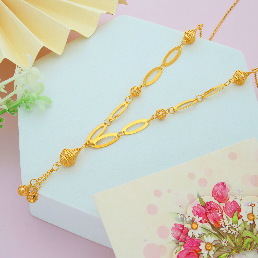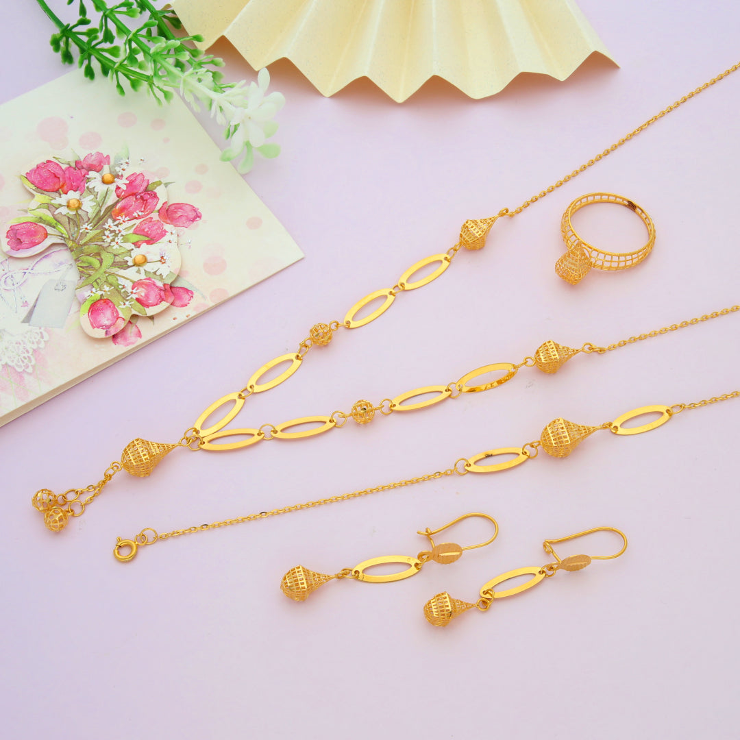 Gold Hanging Tear Drop Shaped Pendant Set (Necklace, Bracelet, Earrings and Ring) 21KT - FKJNKLST21KM9857