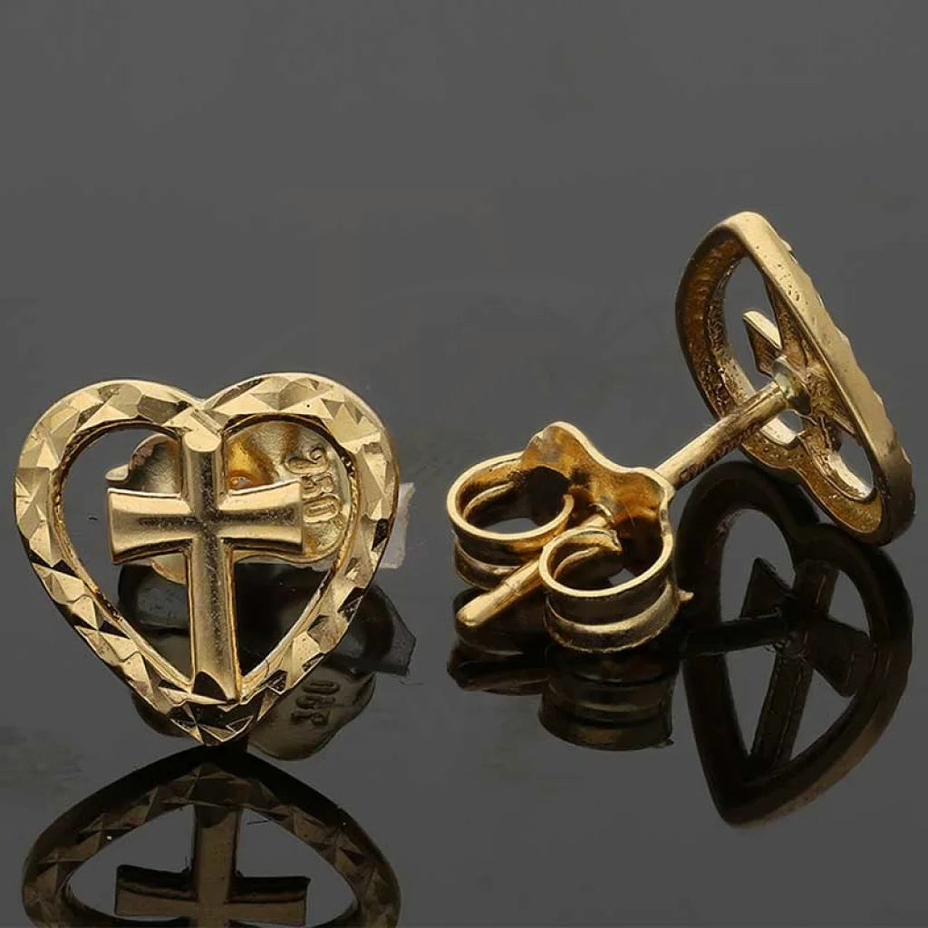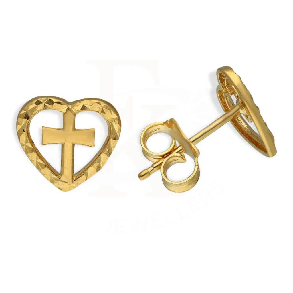 Gold Heart Cross Stud Earrings 18KT - FKJERN18K2800