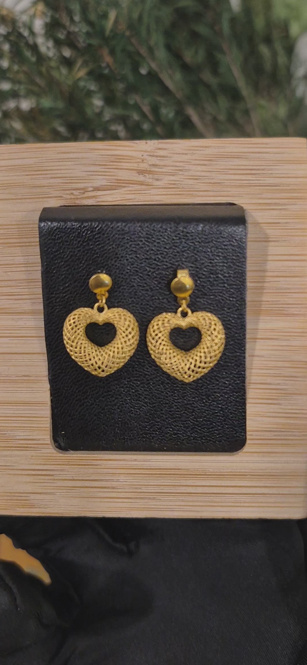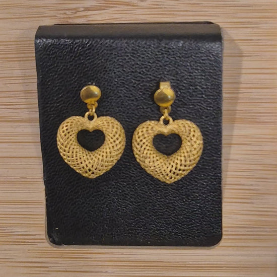 Gold Heart Drop Earrings 21KT - FKJERN21KM11477