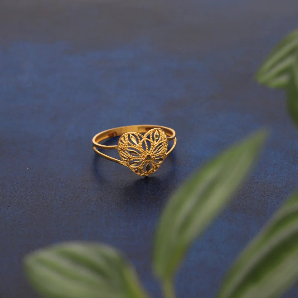 Gold Heart Floral Design Ring 21KT - FKJRN21KM8553