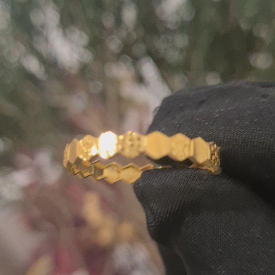 Gold Hexa-Design Ring 21KT - FKJRN21KM10900