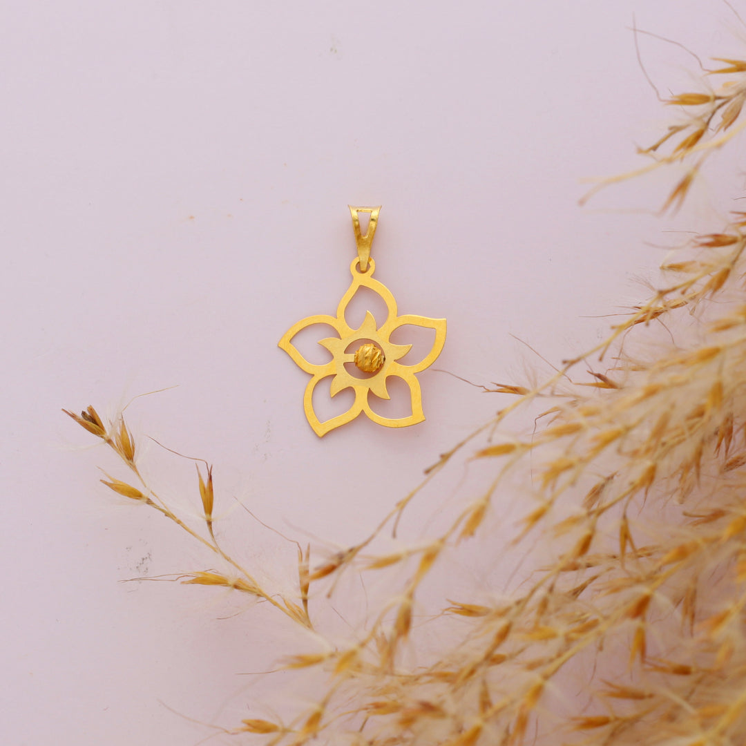 Gold Hollow Flower Shaped Pendant 21KT - FKJPND21KM9824