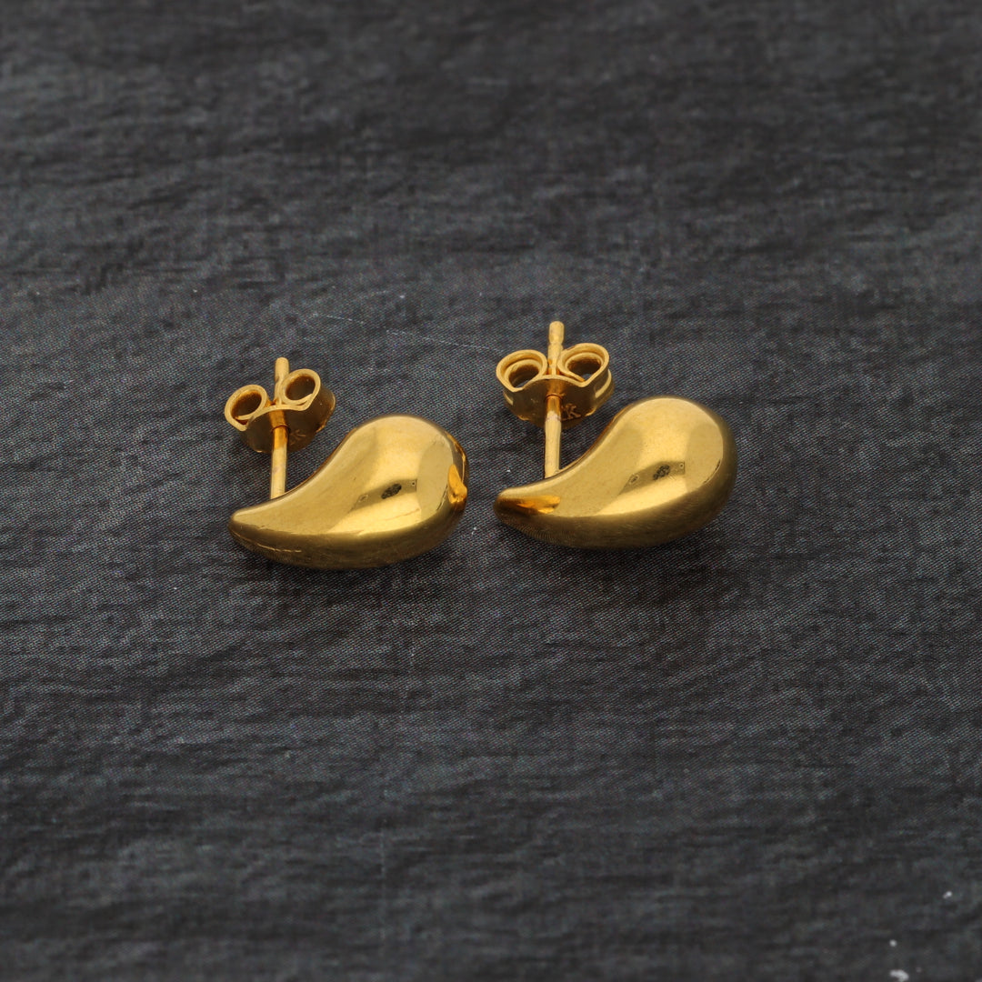 Gold Liquid Drop Shaped Stud Clip Earrings 21KT - FKJERN21KM9591