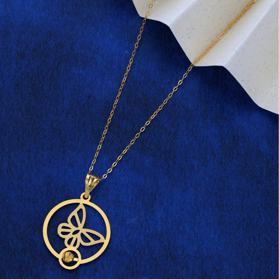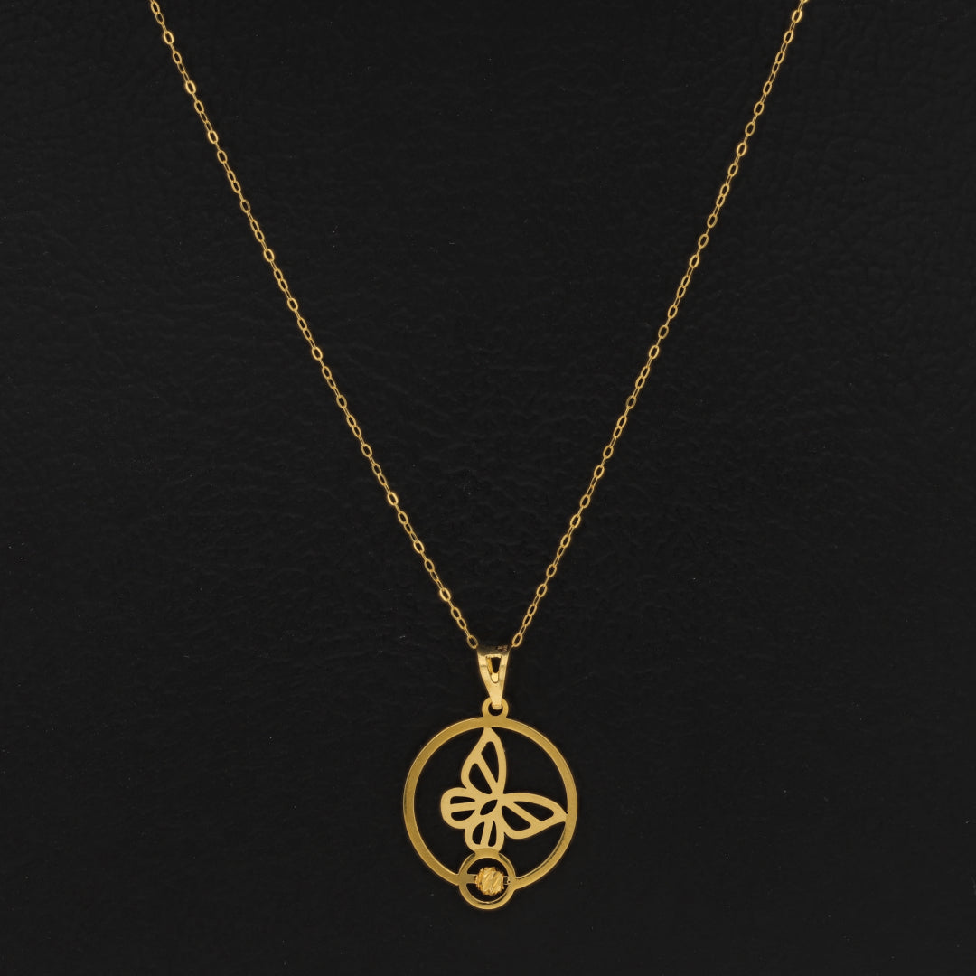 Gold Necklace (Chain Butterfly in Circle Pendant) 21KT - FKJNKL21KM9571