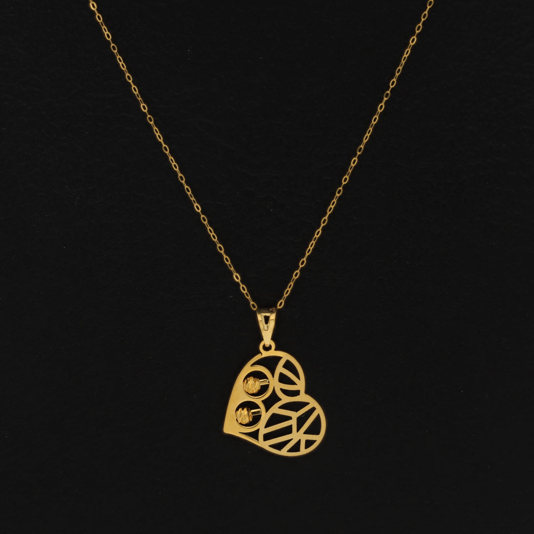 Gold Necklace (Chain Heart Shaped with Stud Ball Pendant) 21KT - FKJNKL21KM9569