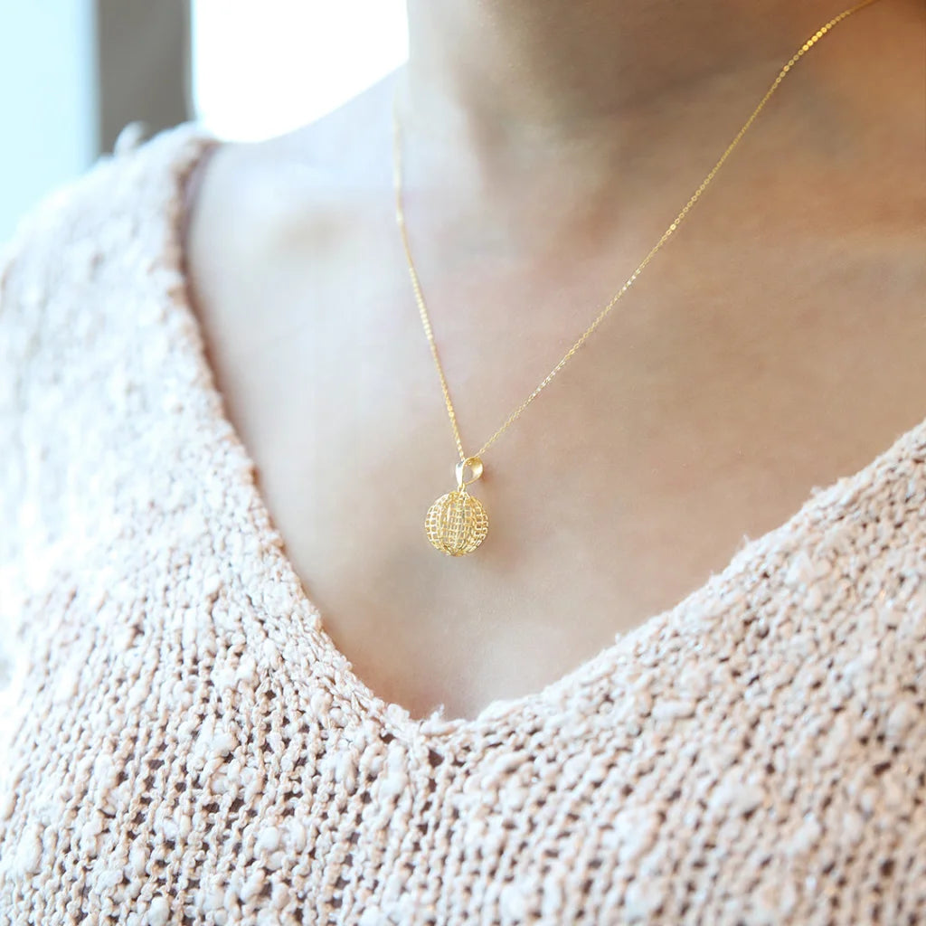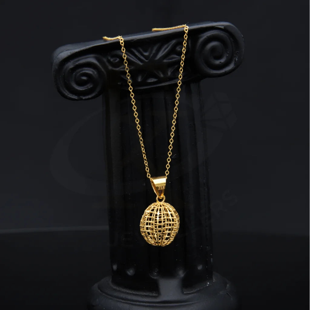 Gold Necklace (Chain With Ball Shaped Hallow Pendant) 21KT - FKJNKL21KM7940