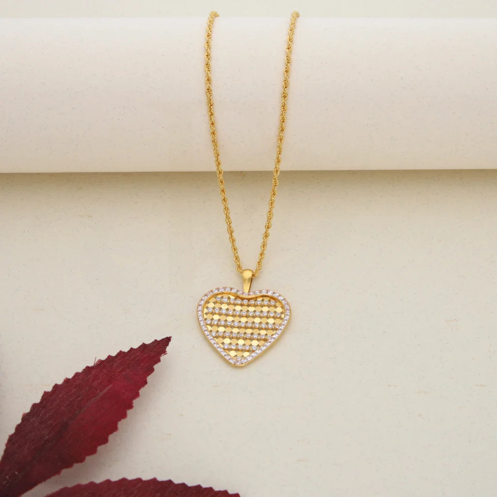 Gold Necklace (Chain with Dual Tone Gold Heart Pendant) 21KT - FKJNKL21K7551