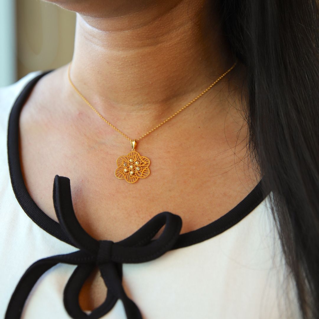 Gold Necklace (Chain With Flower Shaped Pendant) 21KT - FKJNKL21KM9943