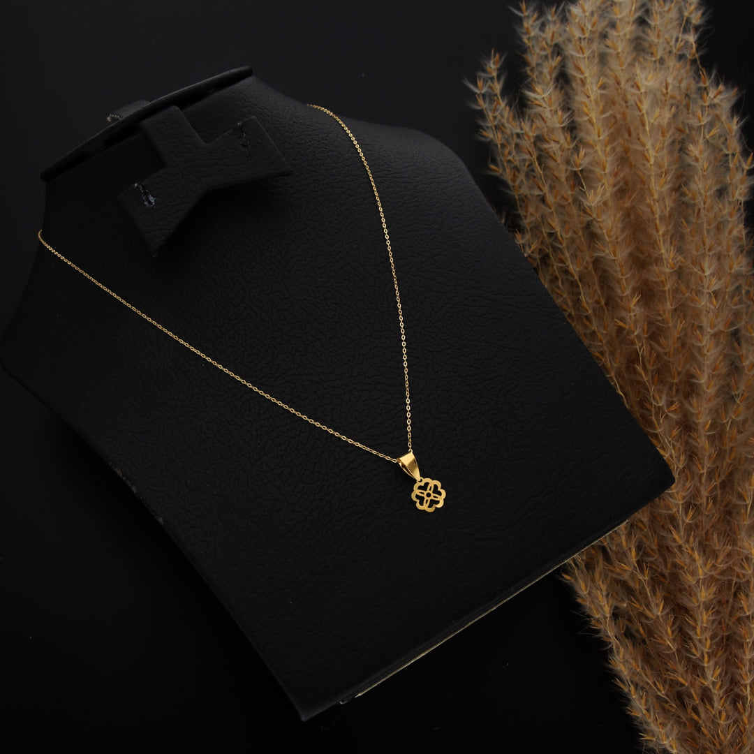 Gold Necklace (Chain With Hollow Clover Leaf Shaped Pendant) 21KT - FKJNKL21KM9819