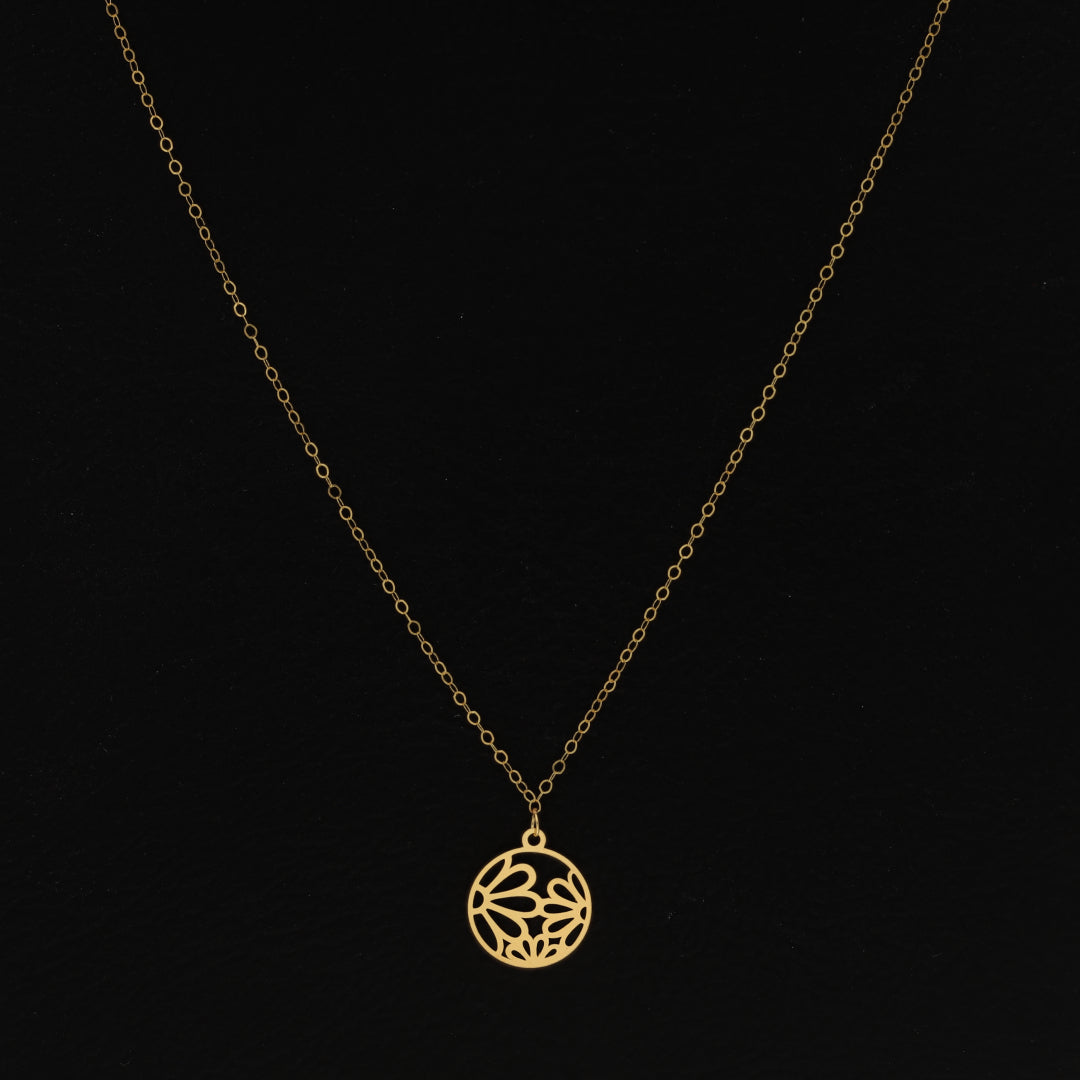 Gold Necklace (Chain With Hollow Round Flower Shaped Pendant) 21KT - FKJNKL21KM9781