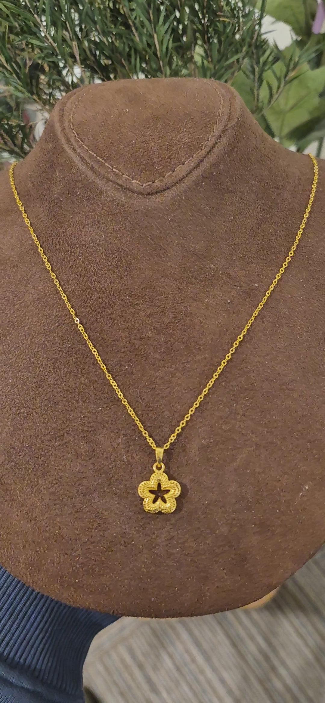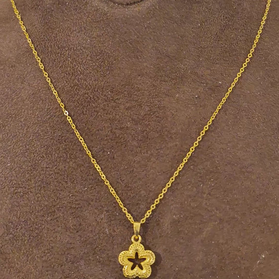 Gold Open Blossom Necklace 21KT - FKJNKL21KM11346