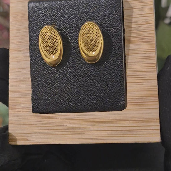 Gold Oval Mesh Earrings 21KT - FKJERN21KM11375