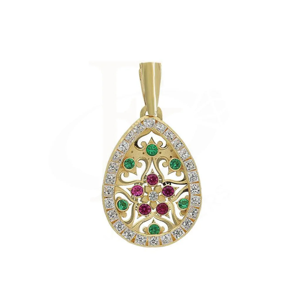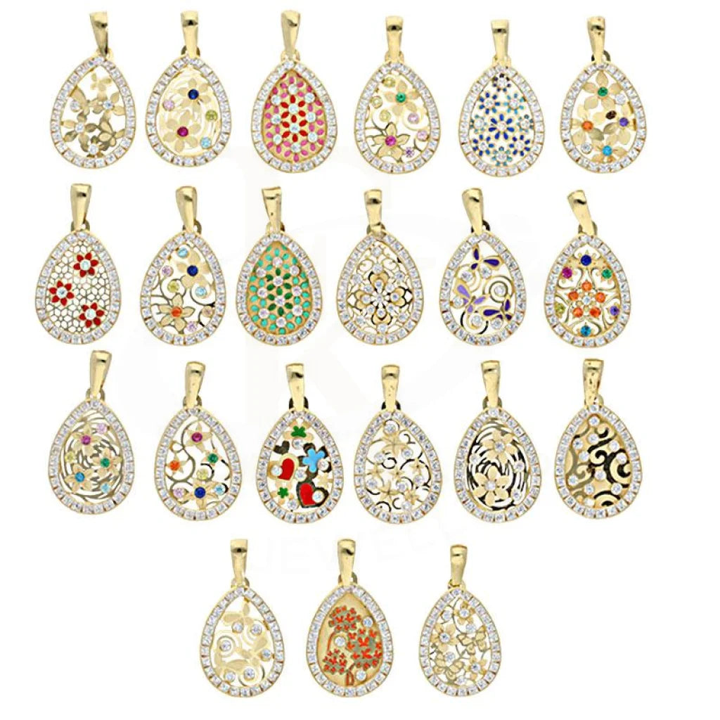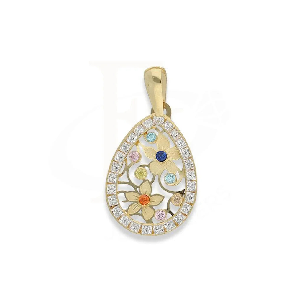Gold Pear Shaped Flowers Pendant 18KT - FKJPND1984