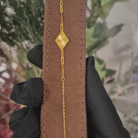 Gold Rhombus Shape Sunburst Bracelet 21KT - FKJBRL21KM10930