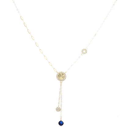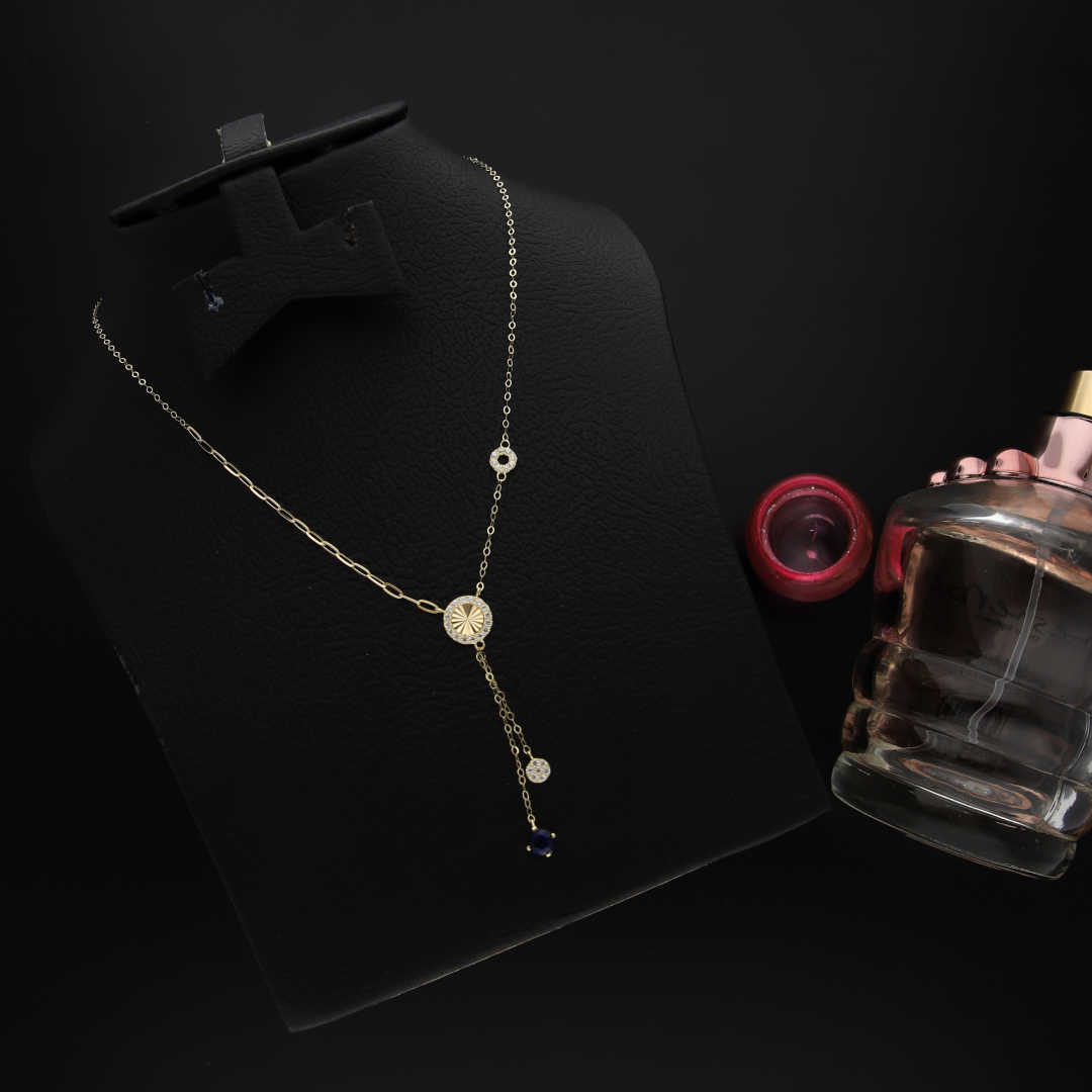 Gold Round Flower Shaped with Solitaire Necklace 18KT - FKJNKL18K9159