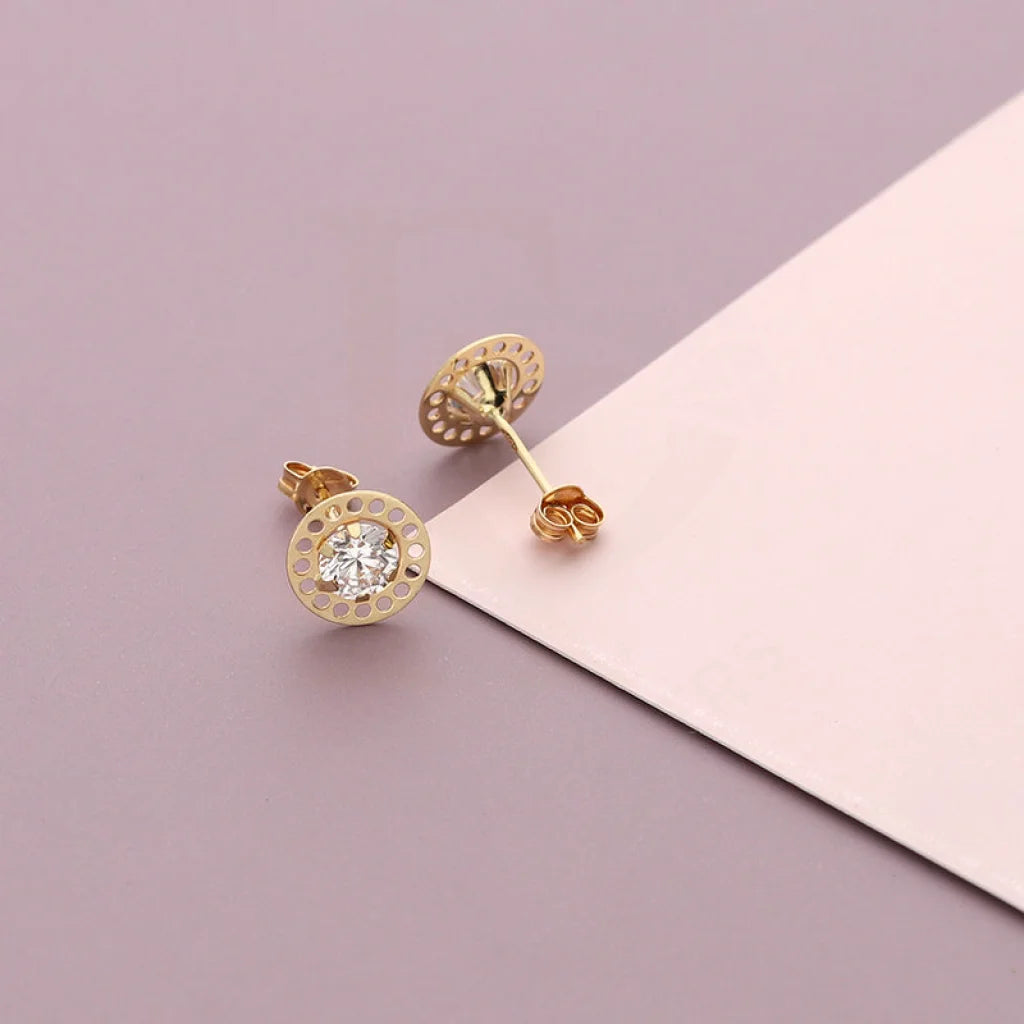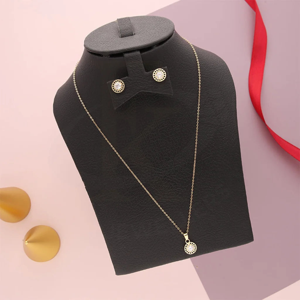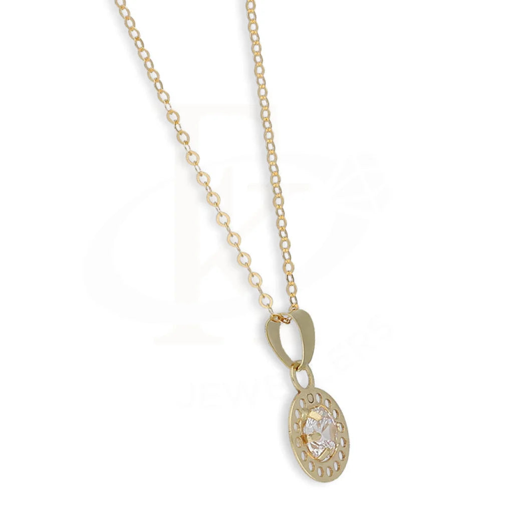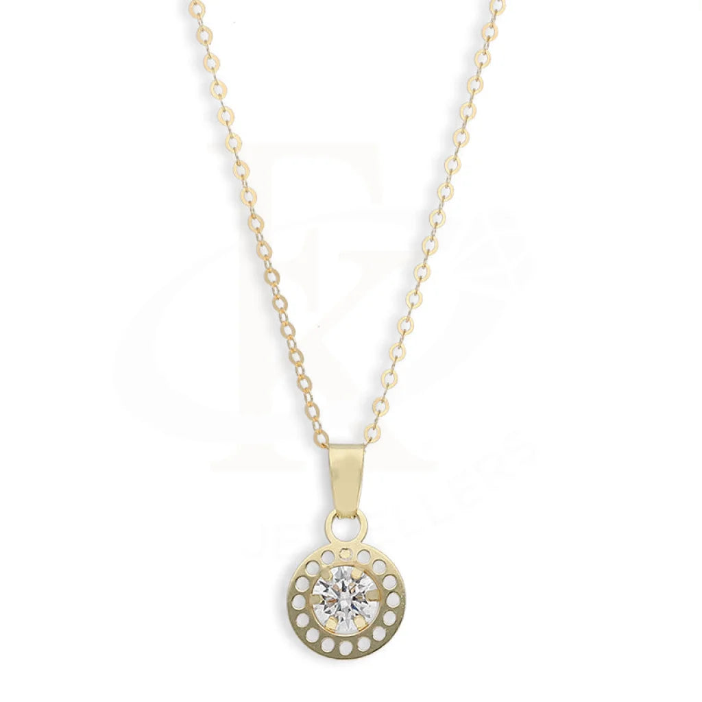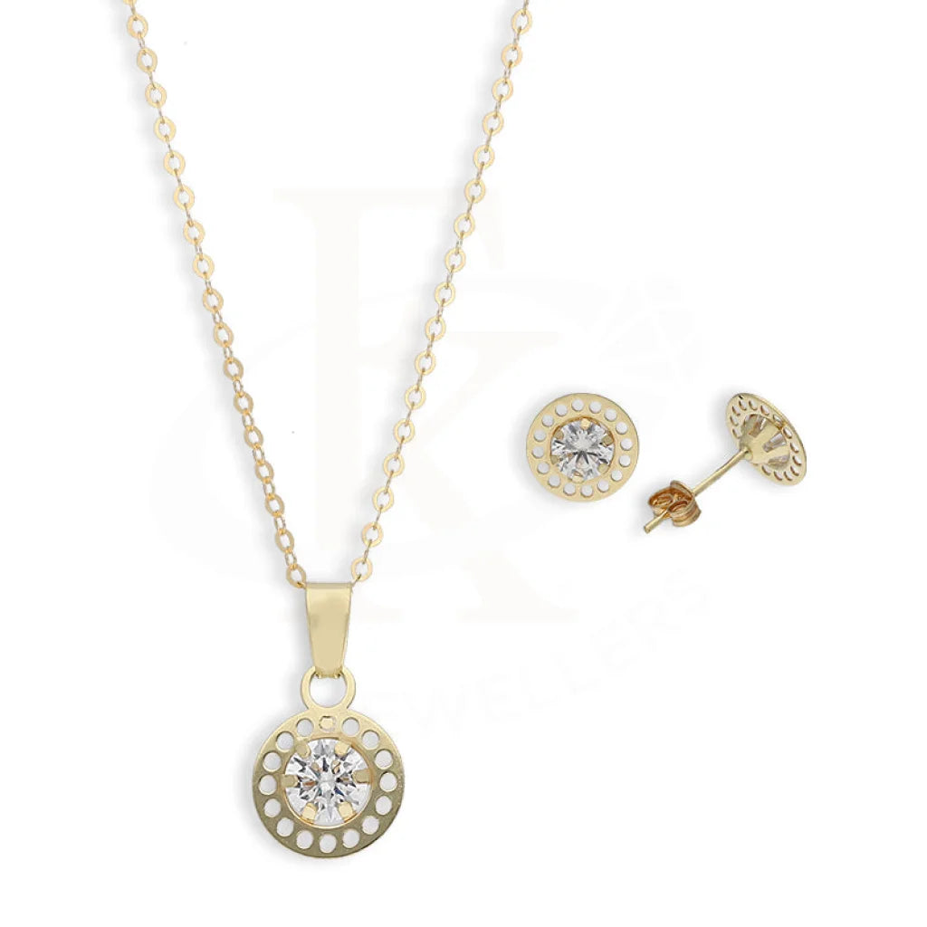 Gold Round Shaped Solitaire Pendant Set (Necklace and Earrings) 18KT - FKJNKLST18K5575