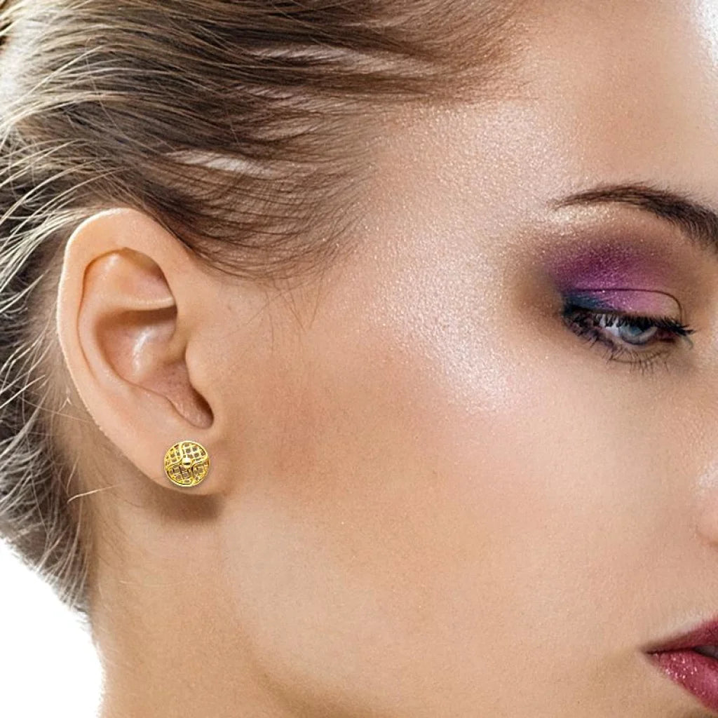 Gold Round Shaped Stud Earrings 18KT - FKJERN18K2295