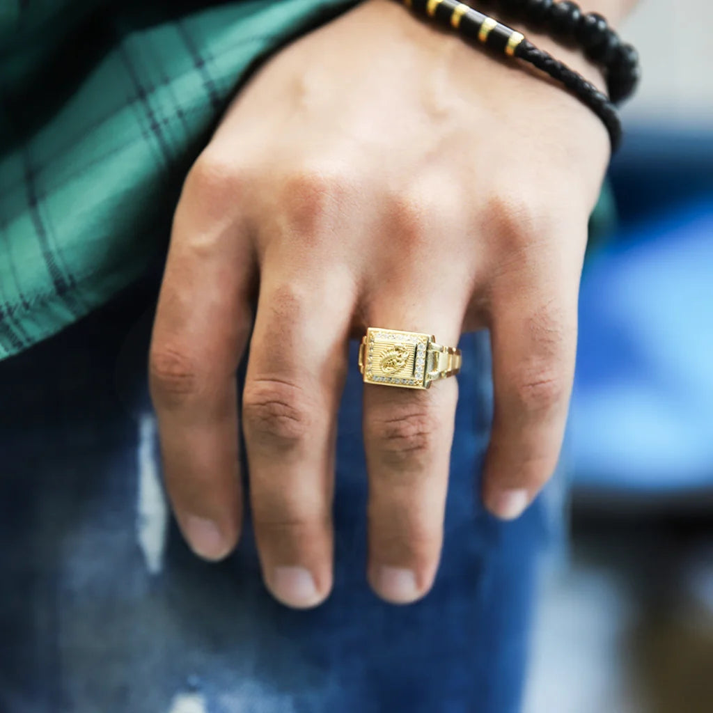 Gold Scorpion Shaped Movable Strap Men's Ring 18KT - FKJRN18K7877