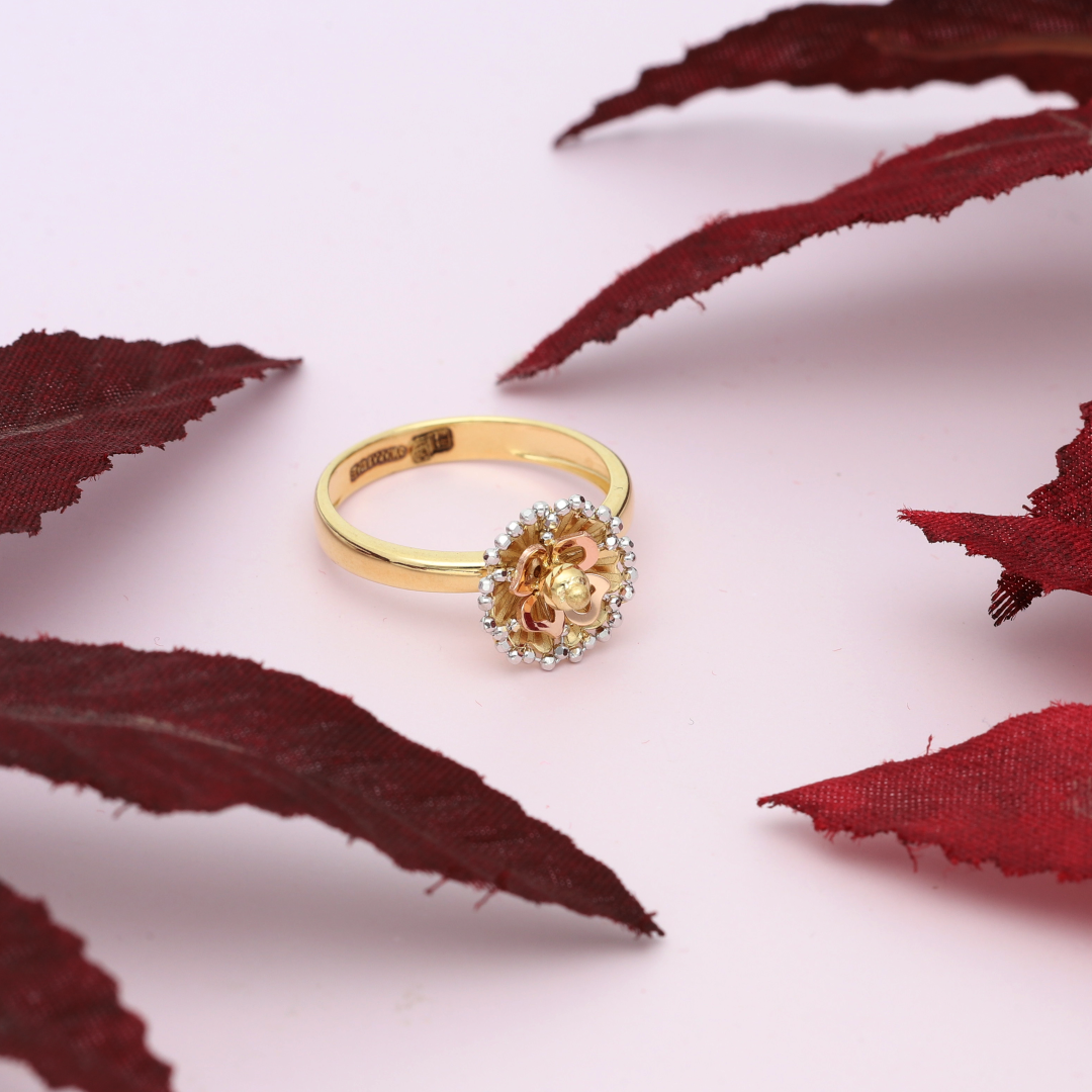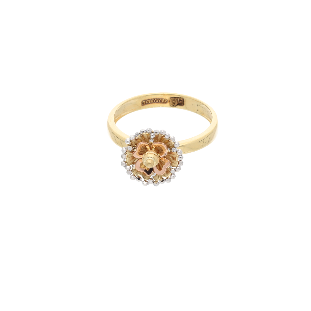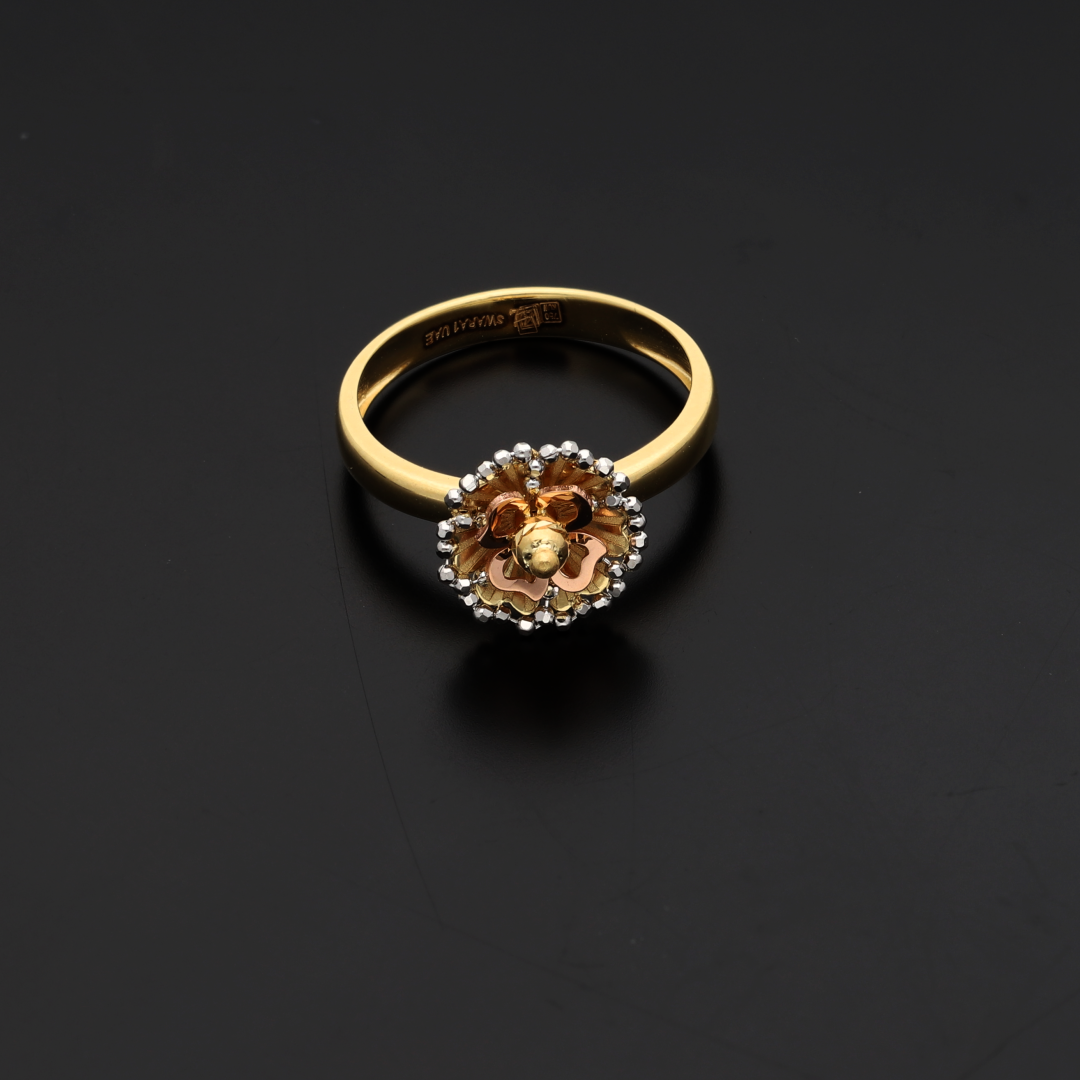 Gold Stud Round Flower Shaped Ring 18KT - FKJRN18K9225