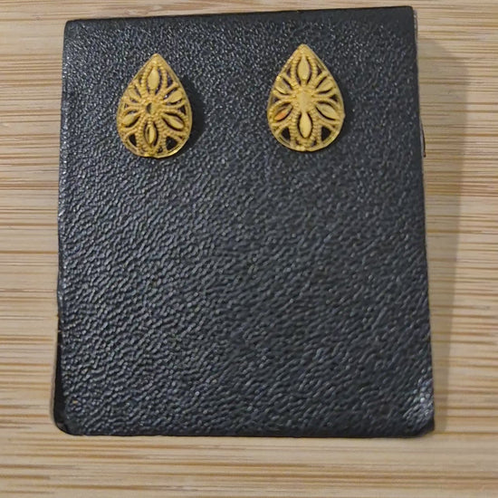 Gold Teardrop Filigree Earrings 21KT - FKJERN21KM11527