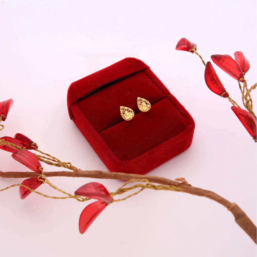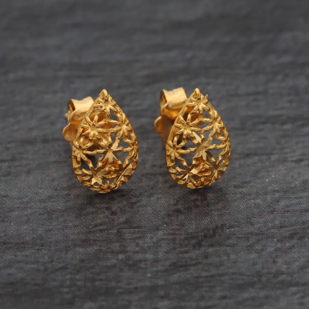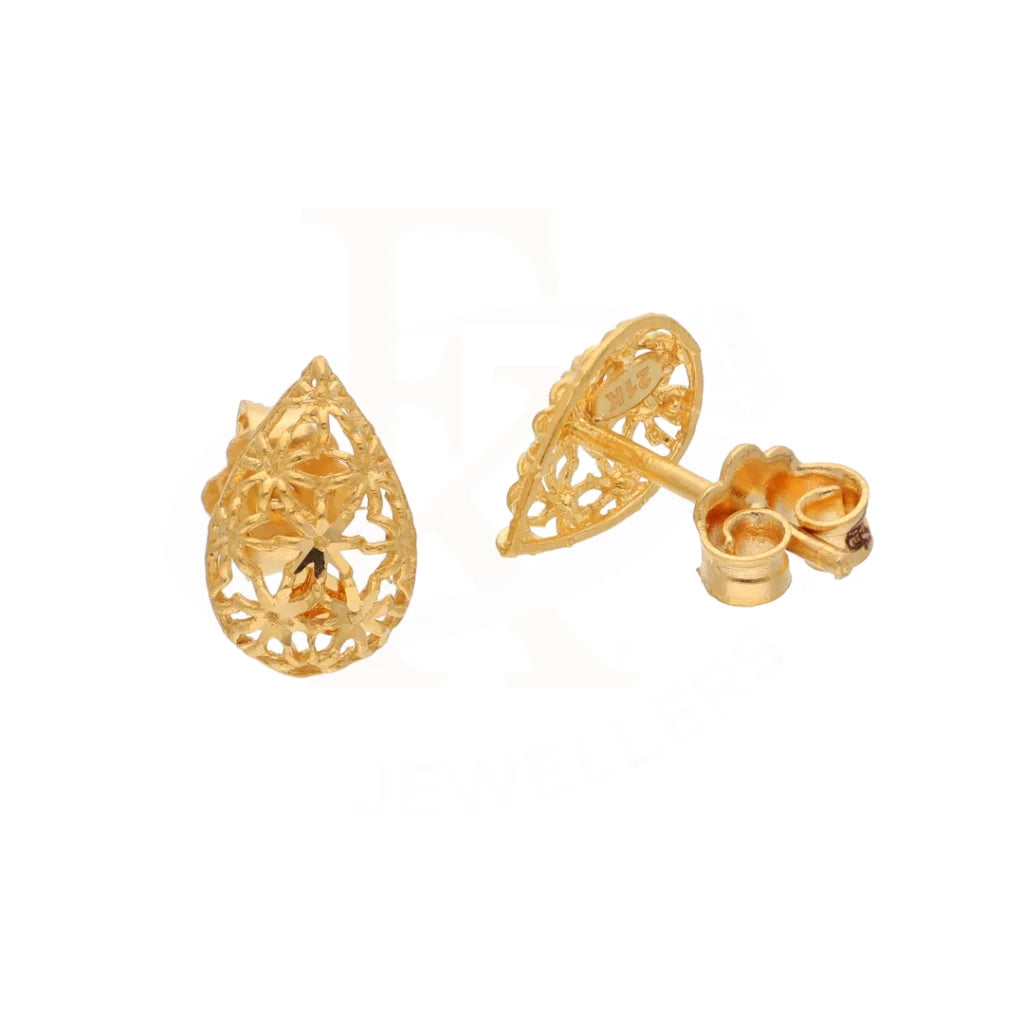Gold Teardrop Shaped Stud Earrings 21KT - FKJERN21KM8494