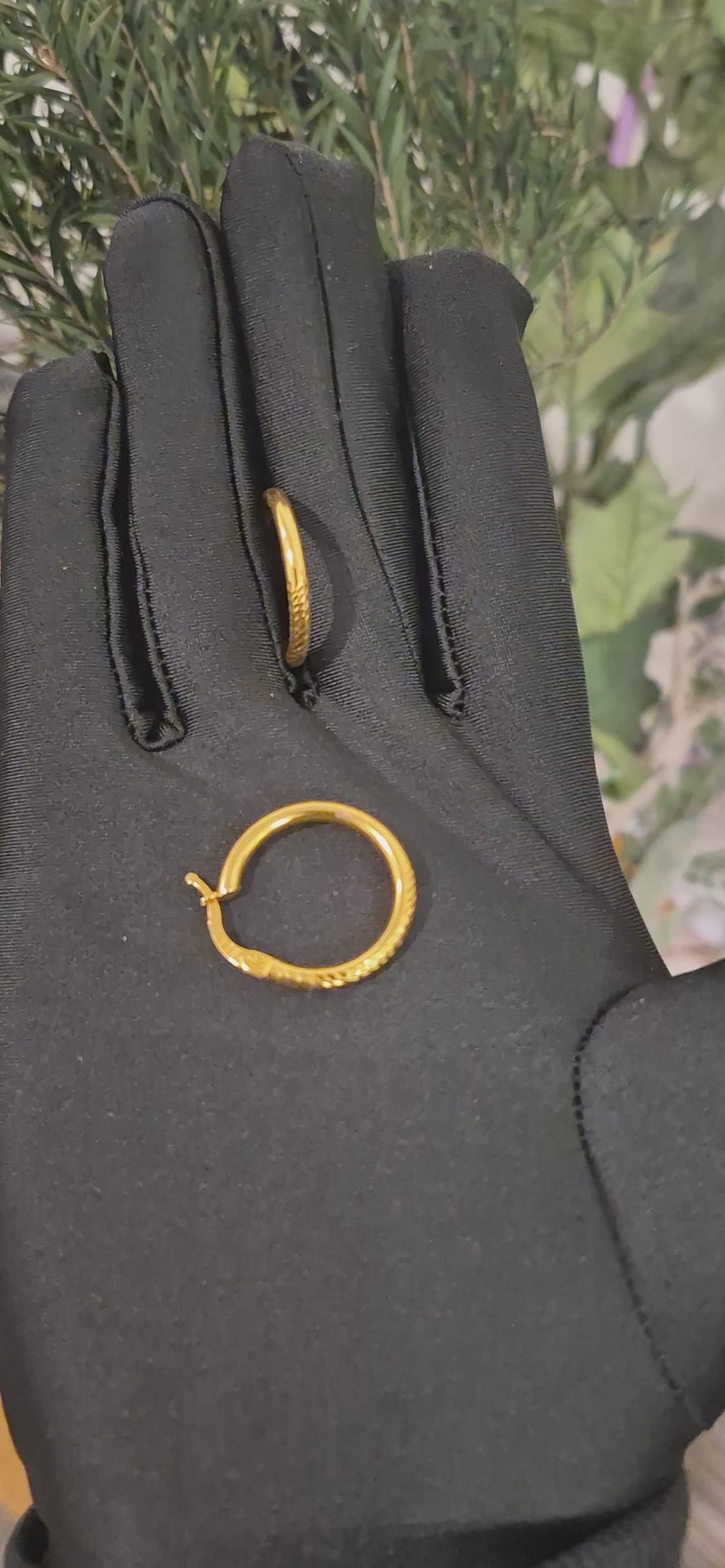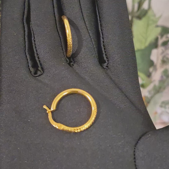 Gold Textured Detail Hoop Earrings 21KT - FKJERN21KM11266