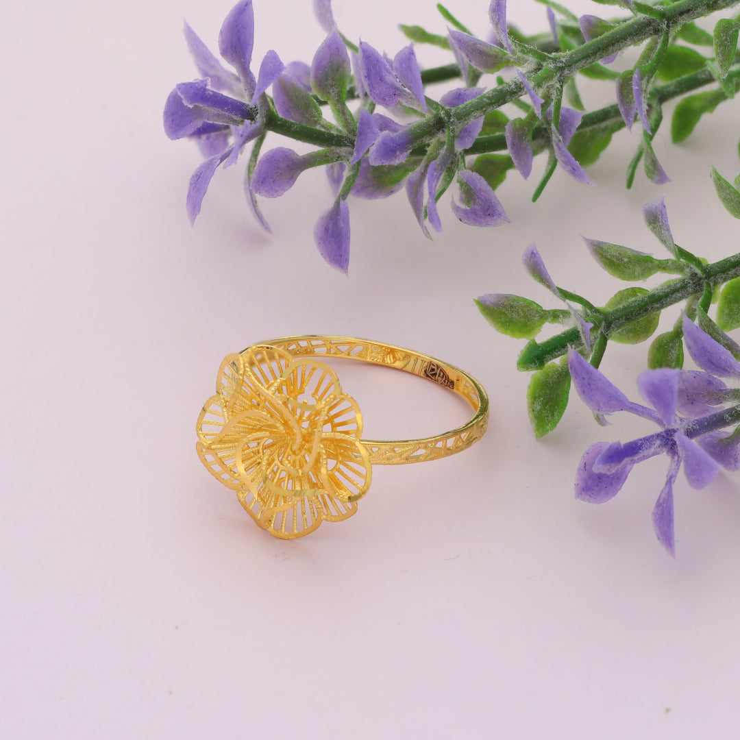 Gold Traditional Flower Design Ring 21KT - FKJRN21KM9681