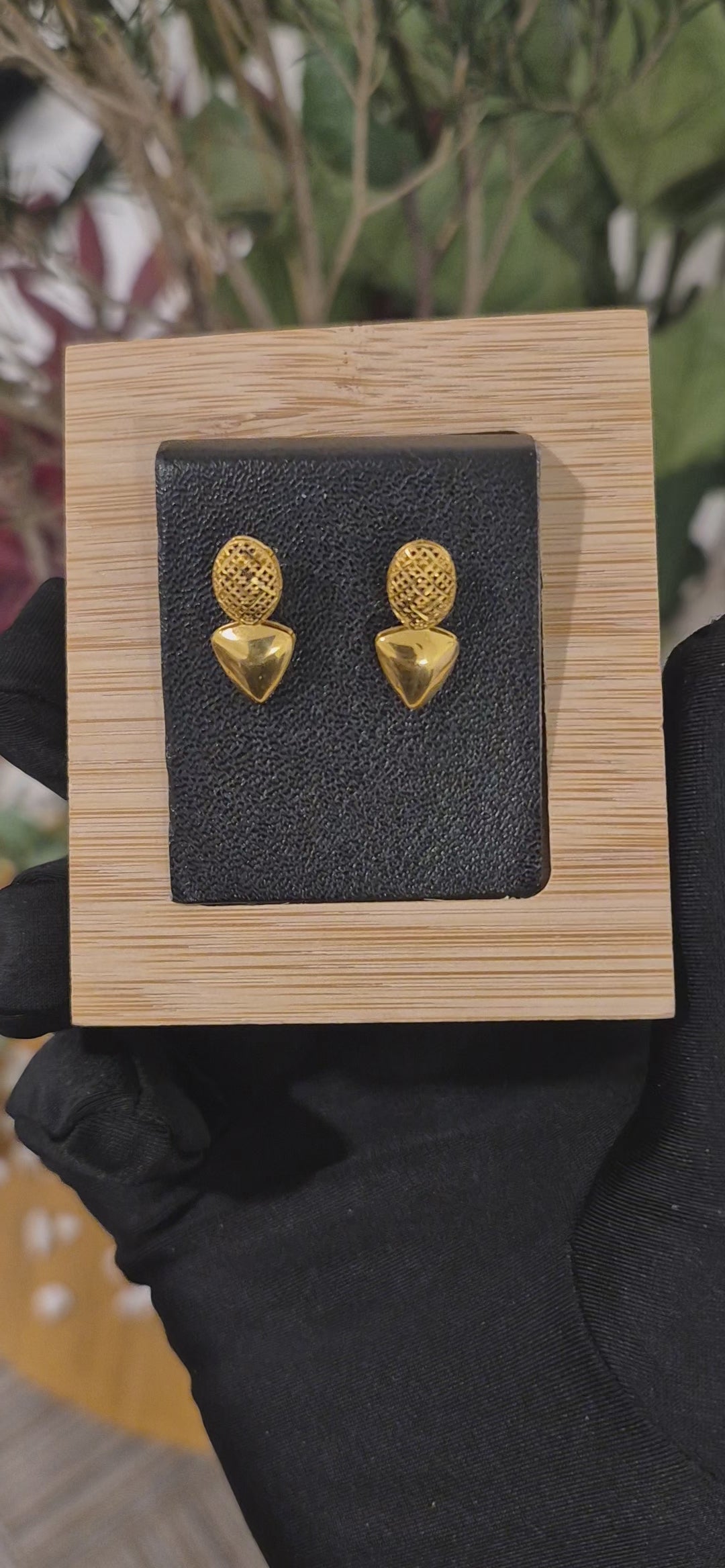 Gold Triangle Drop Earrings 21KT - FKJERN21KM11382