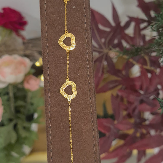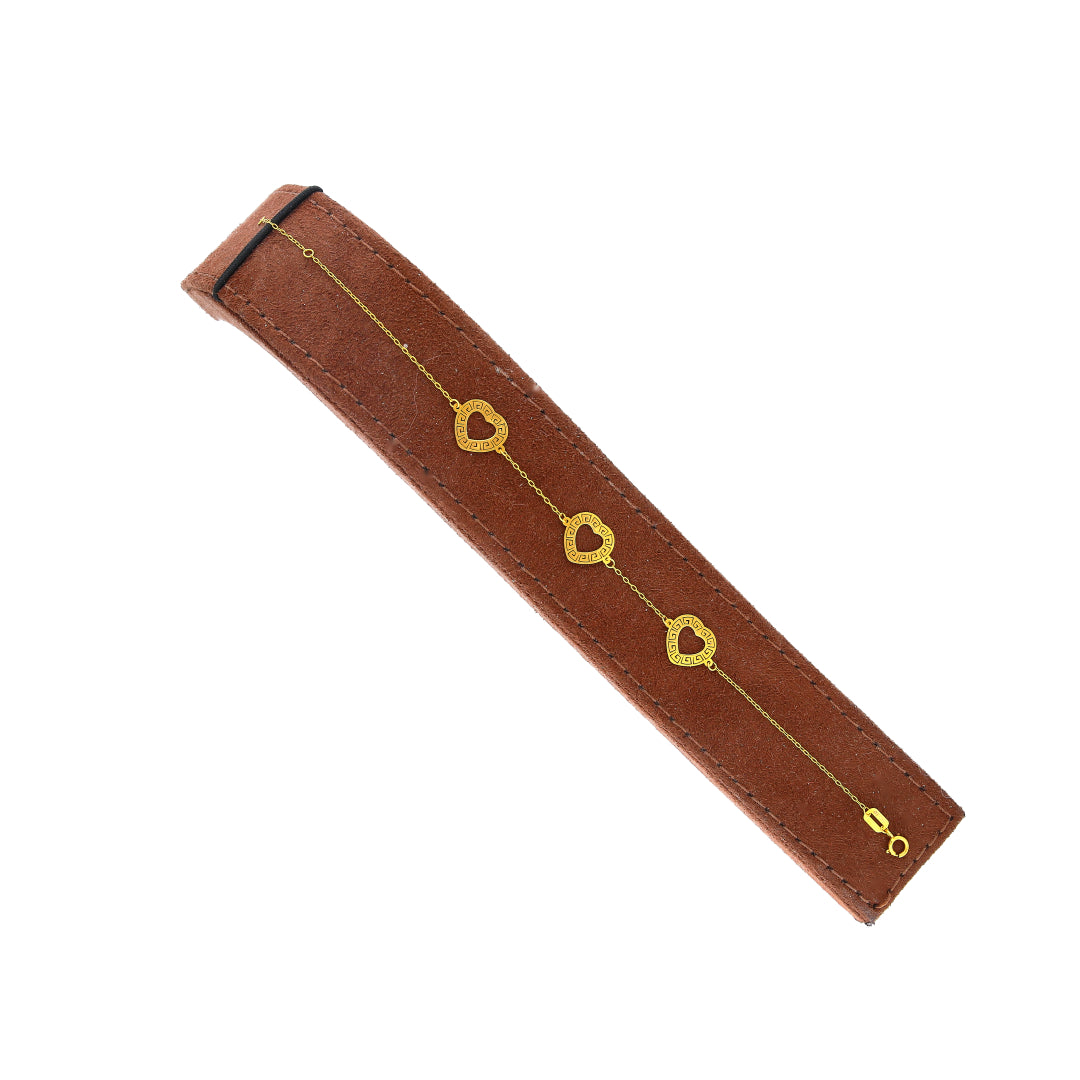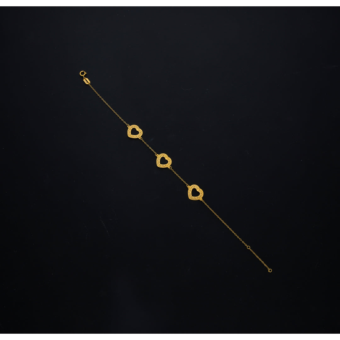 Gold Triple Heart Charm Bracelet 21KT - FKJBRL21KM10514