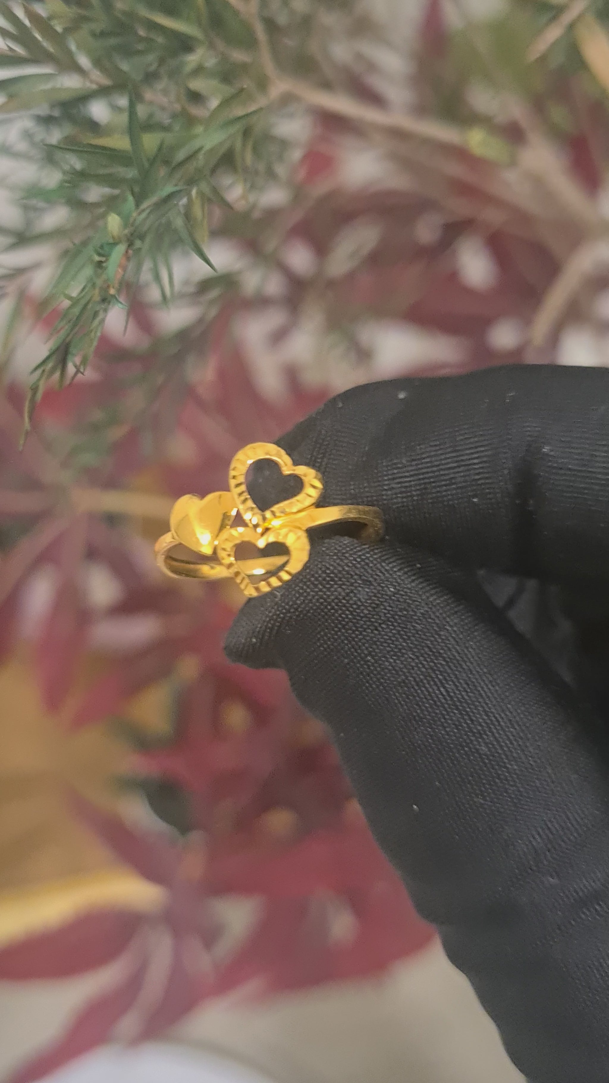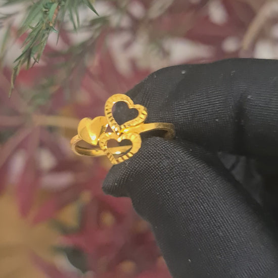 Gold Triple Heart Shaped Ring 21KT - FKJRN21KM10462