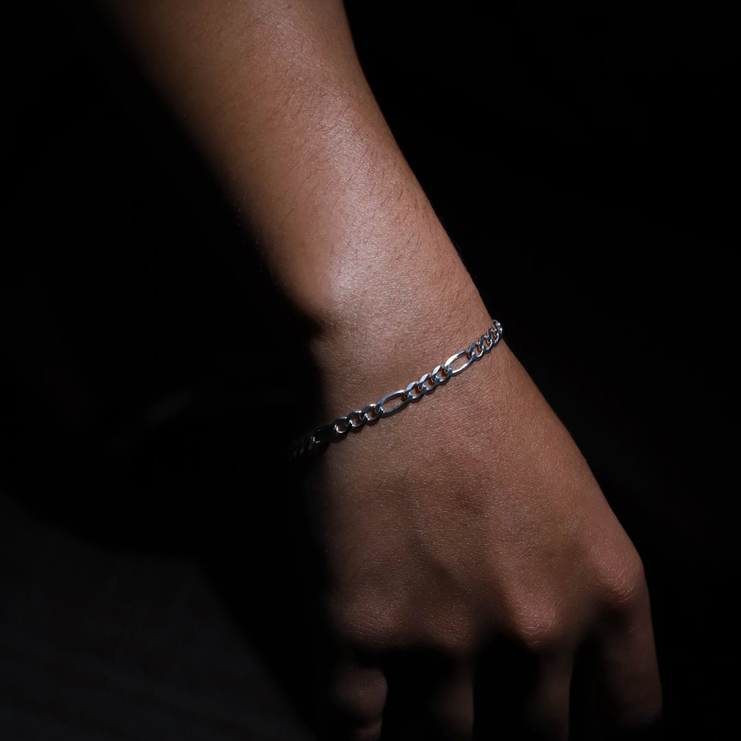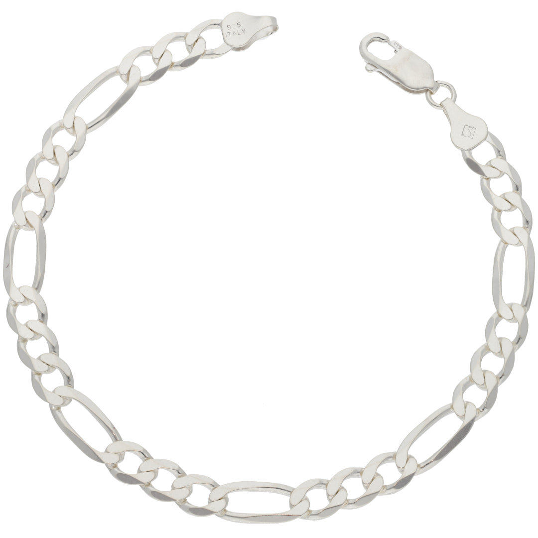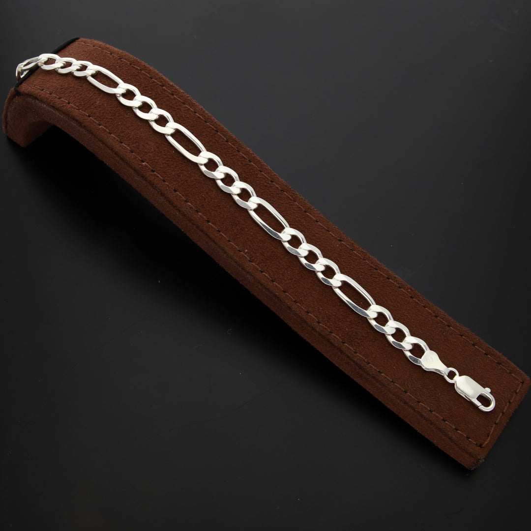 Sterling Silver 925 8 Inches Figaro Bracelet - FKJBRLSL9454