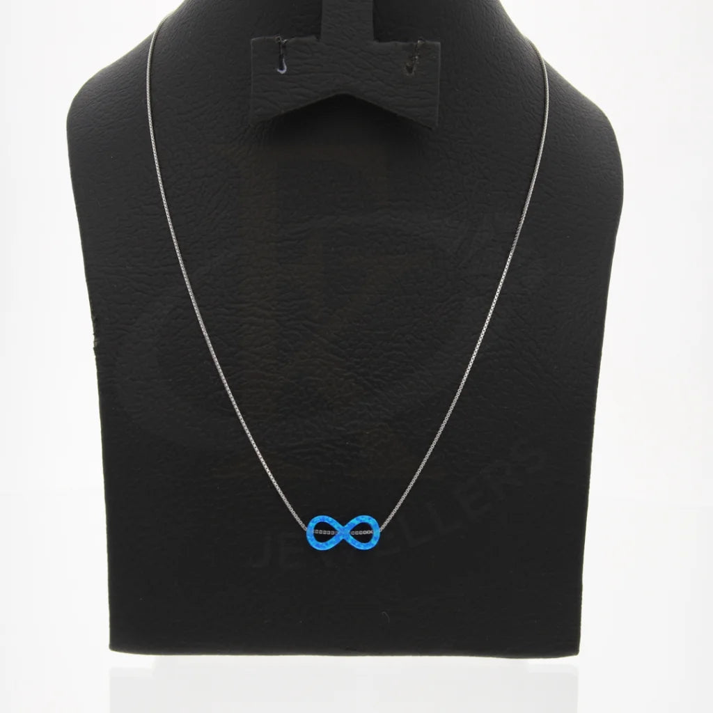 Sterling Silver 925 Blue Opal Infinity Shaped Necklace - FKJNKLSL8065