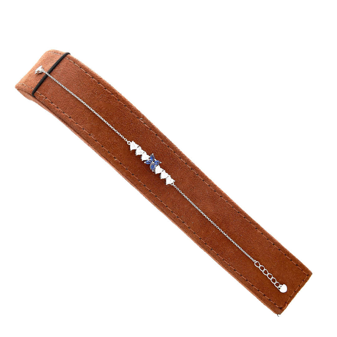 Sterling Silver 925 Blue Sparkling Heart Bracelet - FKJBRLSL10547