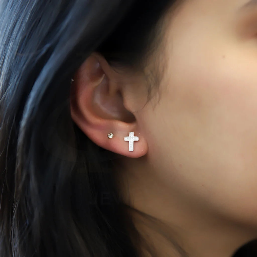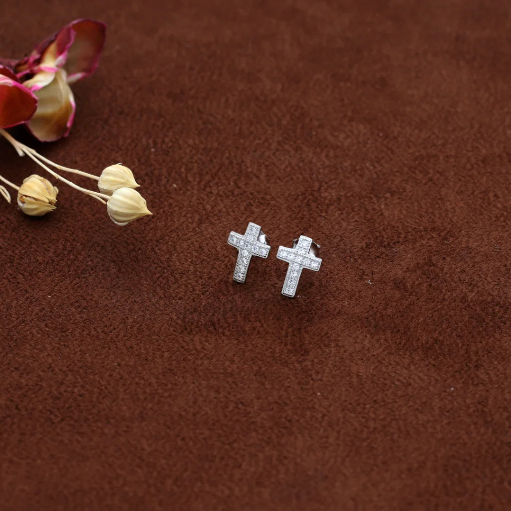 Sterling Silver 925 Cross Cubic Zirconia Earrings - FKJERNSL8032
