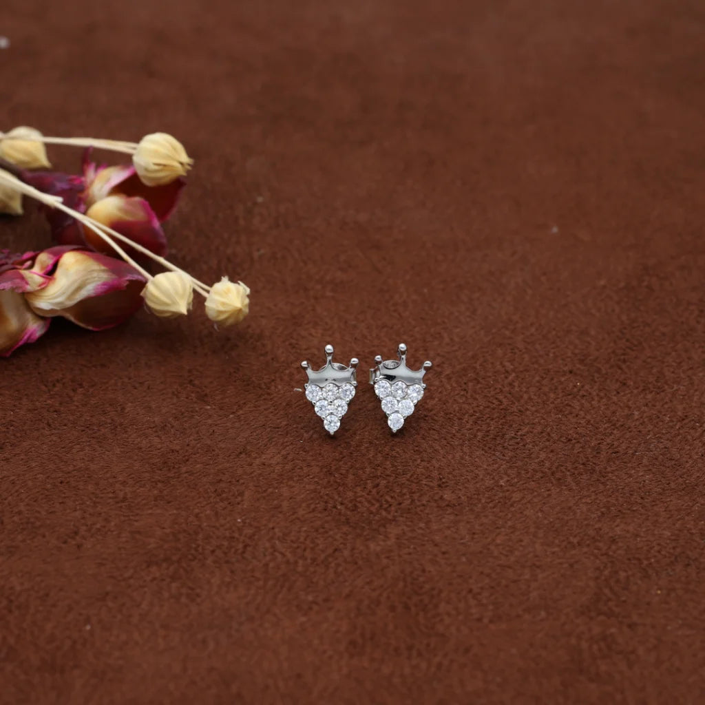 Sterling Silver 925 Cubic Zirconia Crown Shaped Earrings - FKJERNSL8005