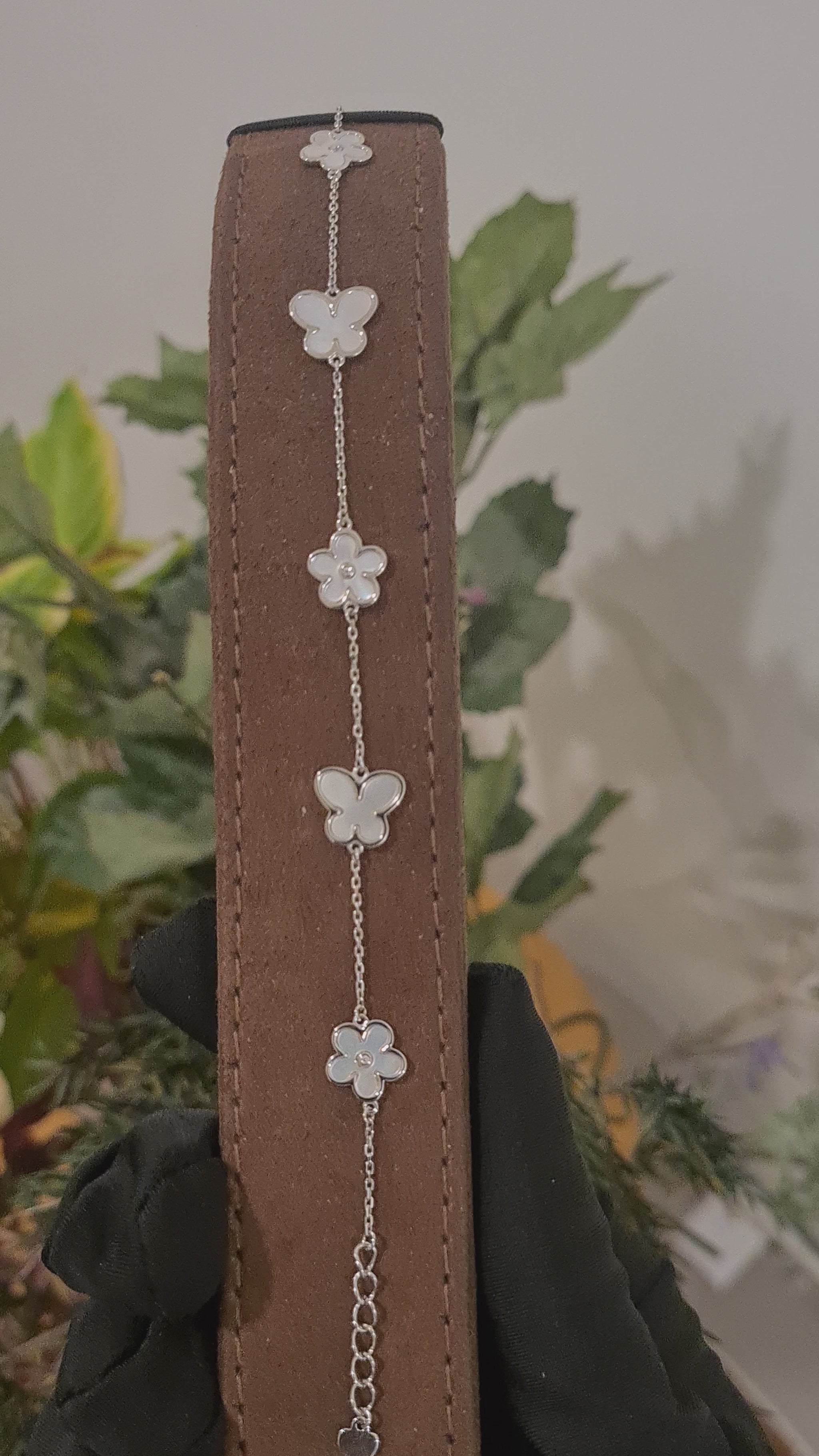 Sterling Silver 925 Floral Butterfly Charm Bracelet - FKJBRLSL10673