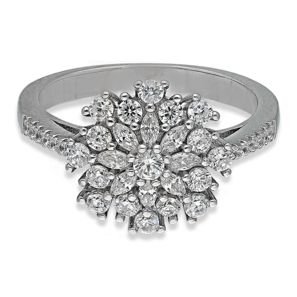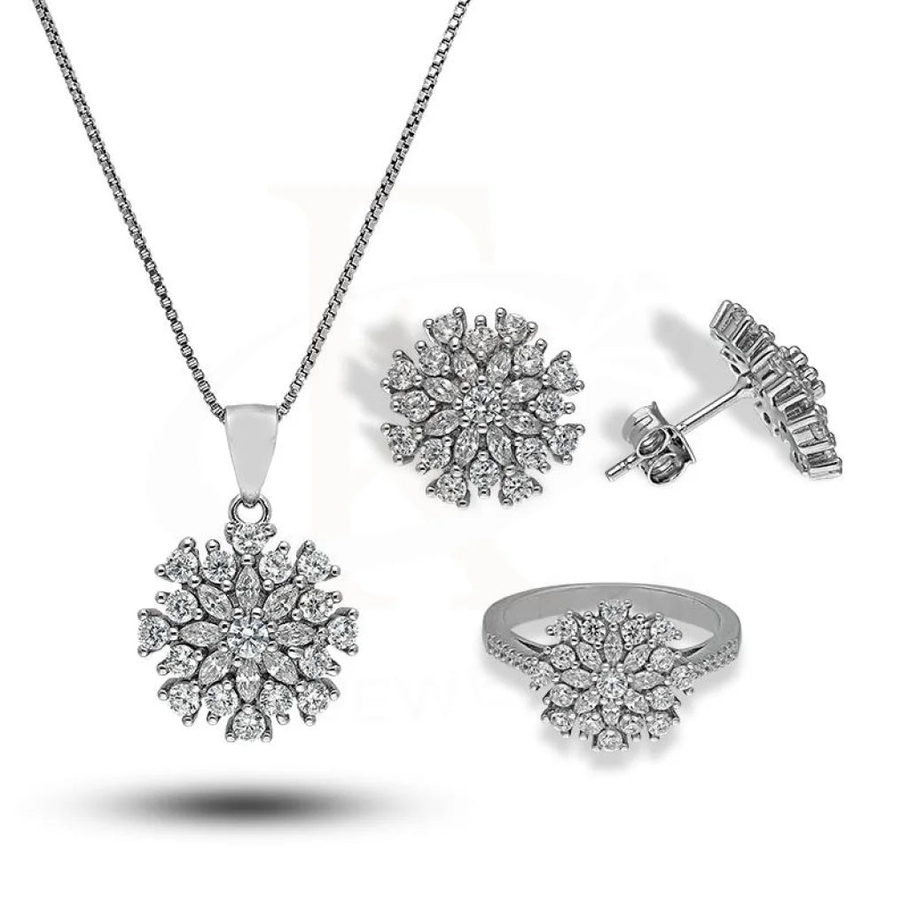 Sterling Silver 925 Flower Pendant Set (Necklace, Earrings and Ring) - FKJNKLSTSL2287